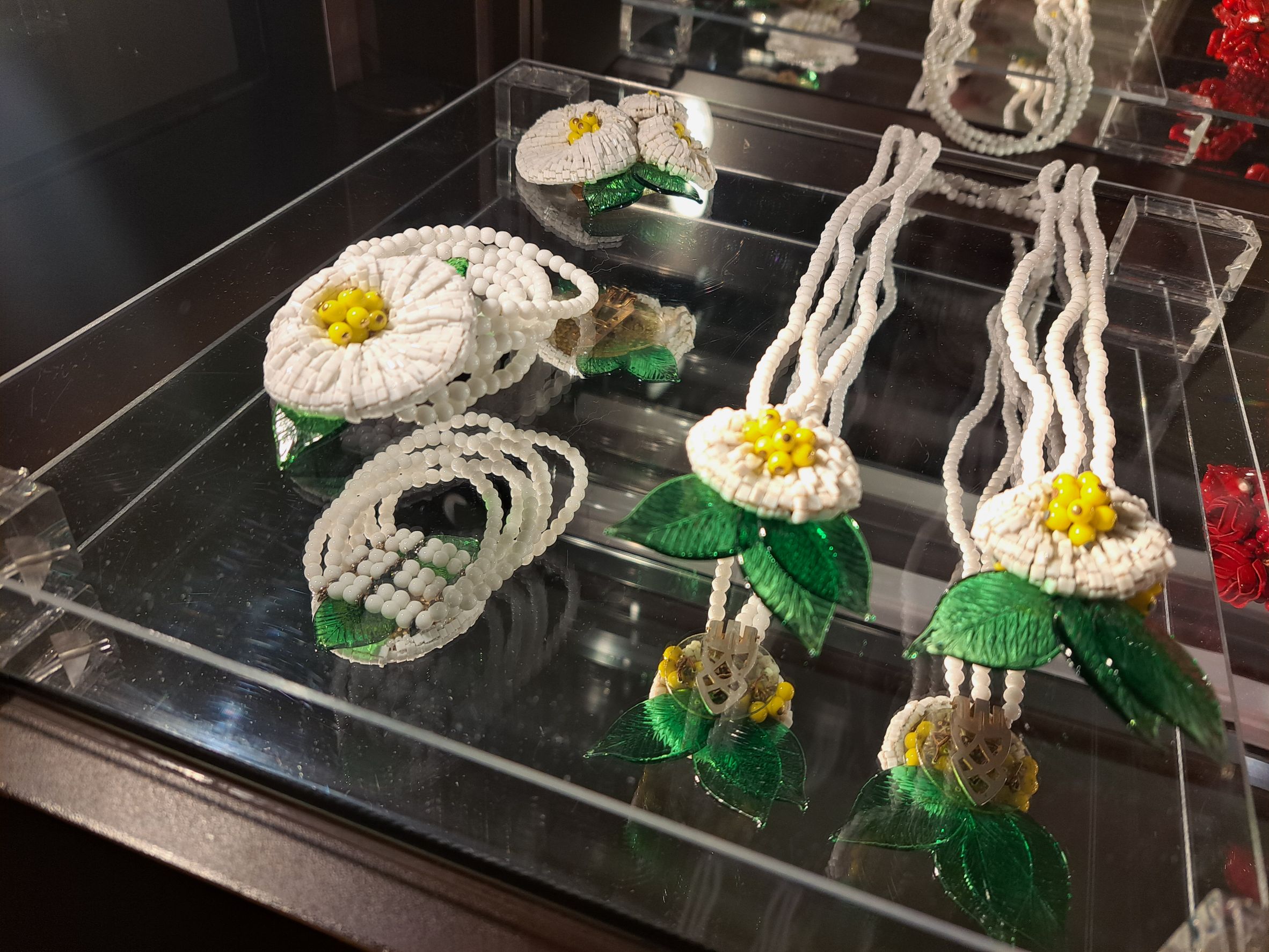 展示ケースでは多くの作品の裏側まで鑑賞できます。ワイヤーワークの構造や職人の工夫を間近で確認できる点も見どころです。ハイジュエリーとは異なる、20世紀アメリカにおける装身具文化の位置づけや、女性の社会進出と自己表現の関係性を読み解く内容は、装身具史、ファッション史、女性史の観点からも高い価値を備えています。