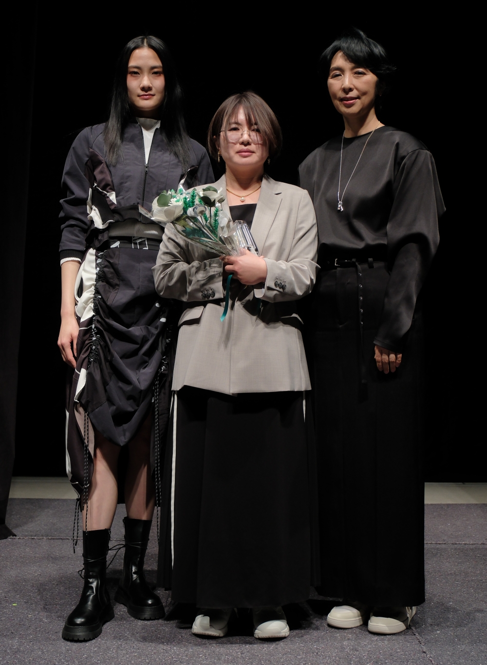 「Two Ways」をテーマに、1着の中に複数の表情を持たせるデザインを作り上げました。ギャザーの動きによってシルエットが変化し、日常の中でさりげなく変化を楽しめる点が魅力です。元の衣服の特徴を尊重しながらも、モード感のある仕上がりが印象に残りました。モード感とシックさを両立したコレクションは手持ち服に合わせるだけで装いを格上げしてくれれそうです。