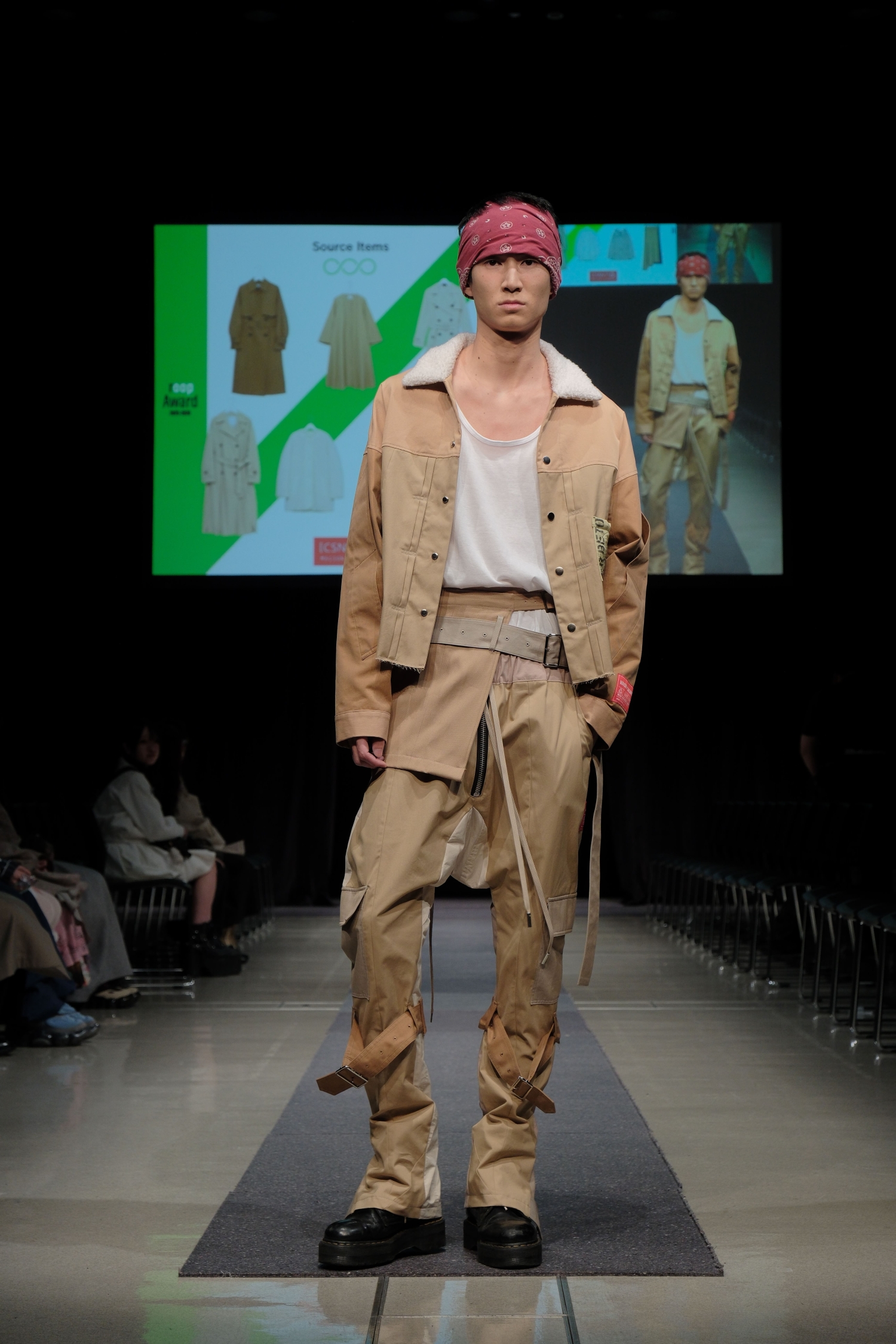 モデルが衣装を着用してランウェイを歩き、審査員の投票により各賞が決定します。審査項目は「デザイン性(素材のデザイン解釈)」「コンセプト(素材のストーリー解釈)」「オリジナリティ(独創性)」「着用における完成度(縫製・快適さ・機能性)」です。私も審査員の一人として参加しました。