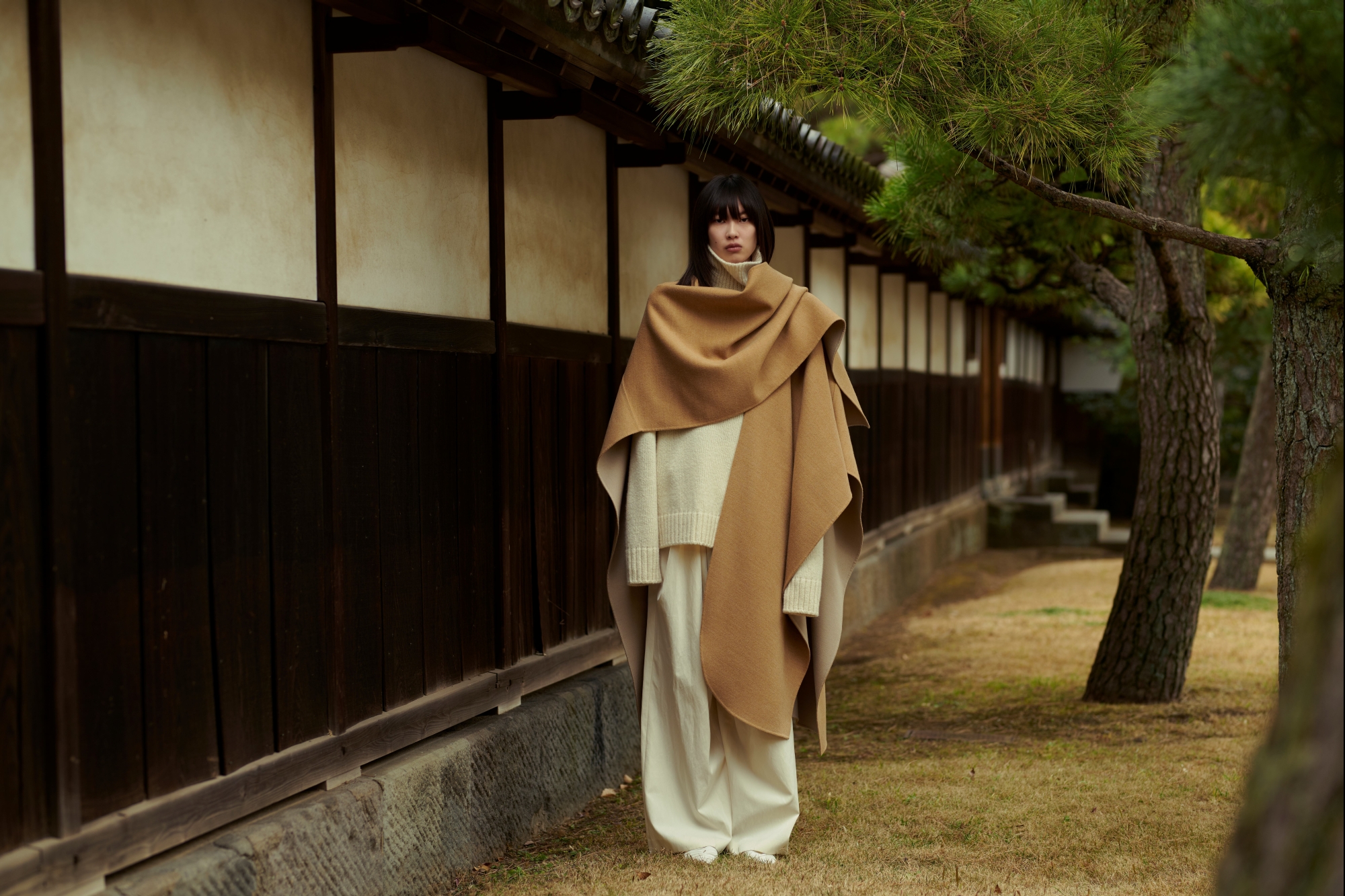 2025-26年秋冬は、日本に根付く「包む」文化を軸に、洗練されたミニマルなデザインと贅沢な素材で日本人のおもてなしの心を表現。さらに、水引に着想を得た「結ぶ」や「ねじる」などのモチーフが随所に施され、繊細なディテール使いが随所に感じられるコレクションとなっています。