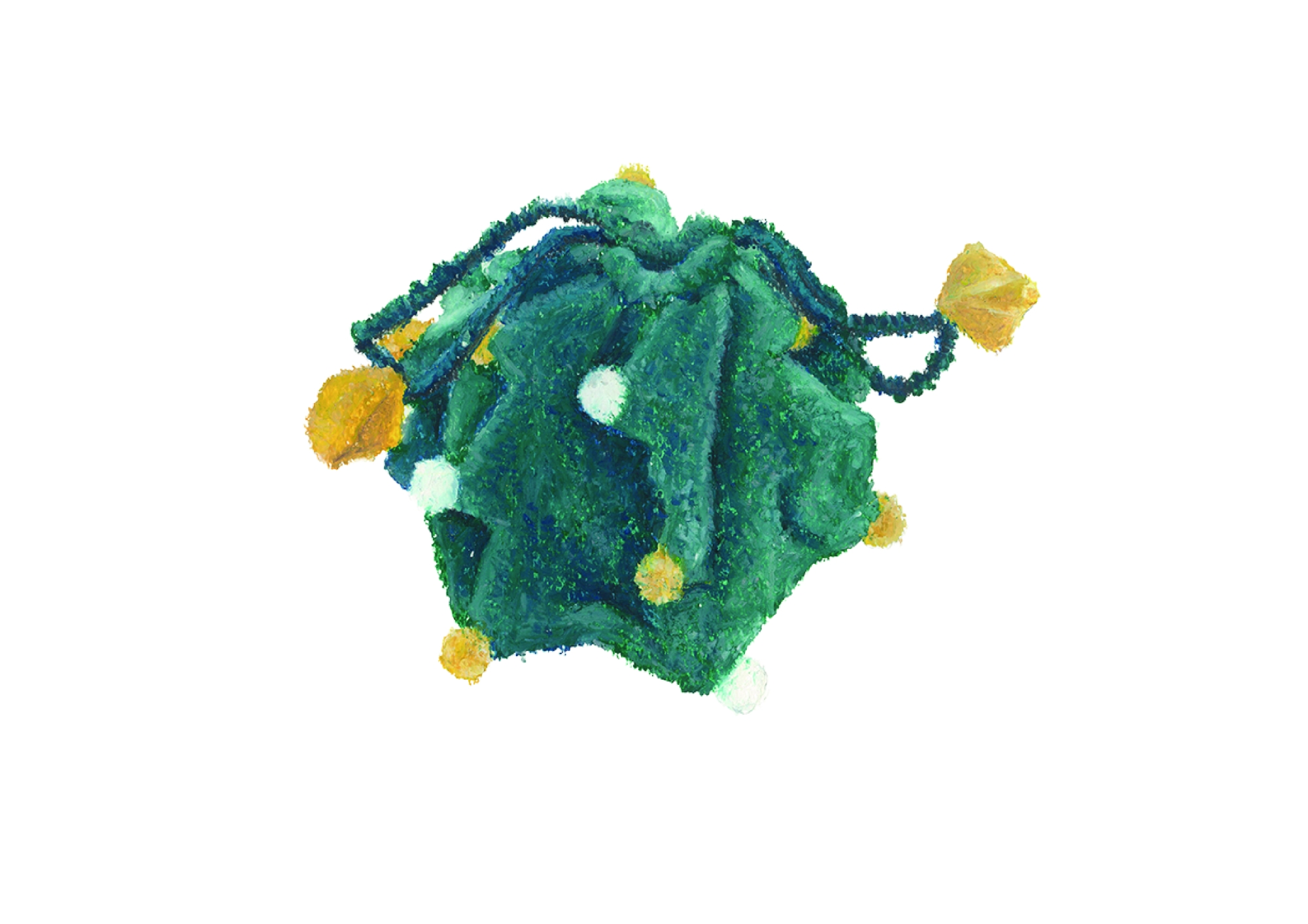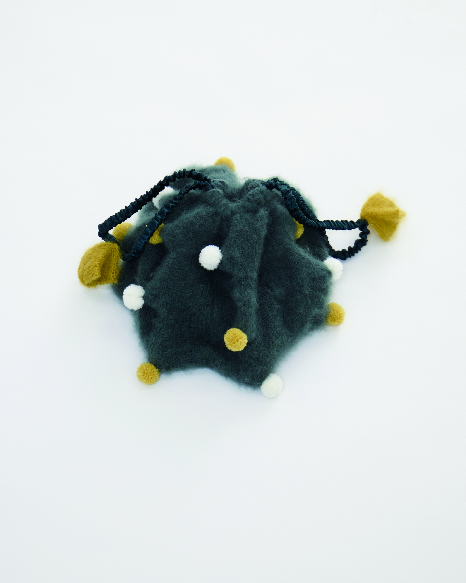 クリスマスツリーをモチーフにした巾着型バッグはころんとしたシルエットが愛らしい。モヘアに起毛加工を施しました。