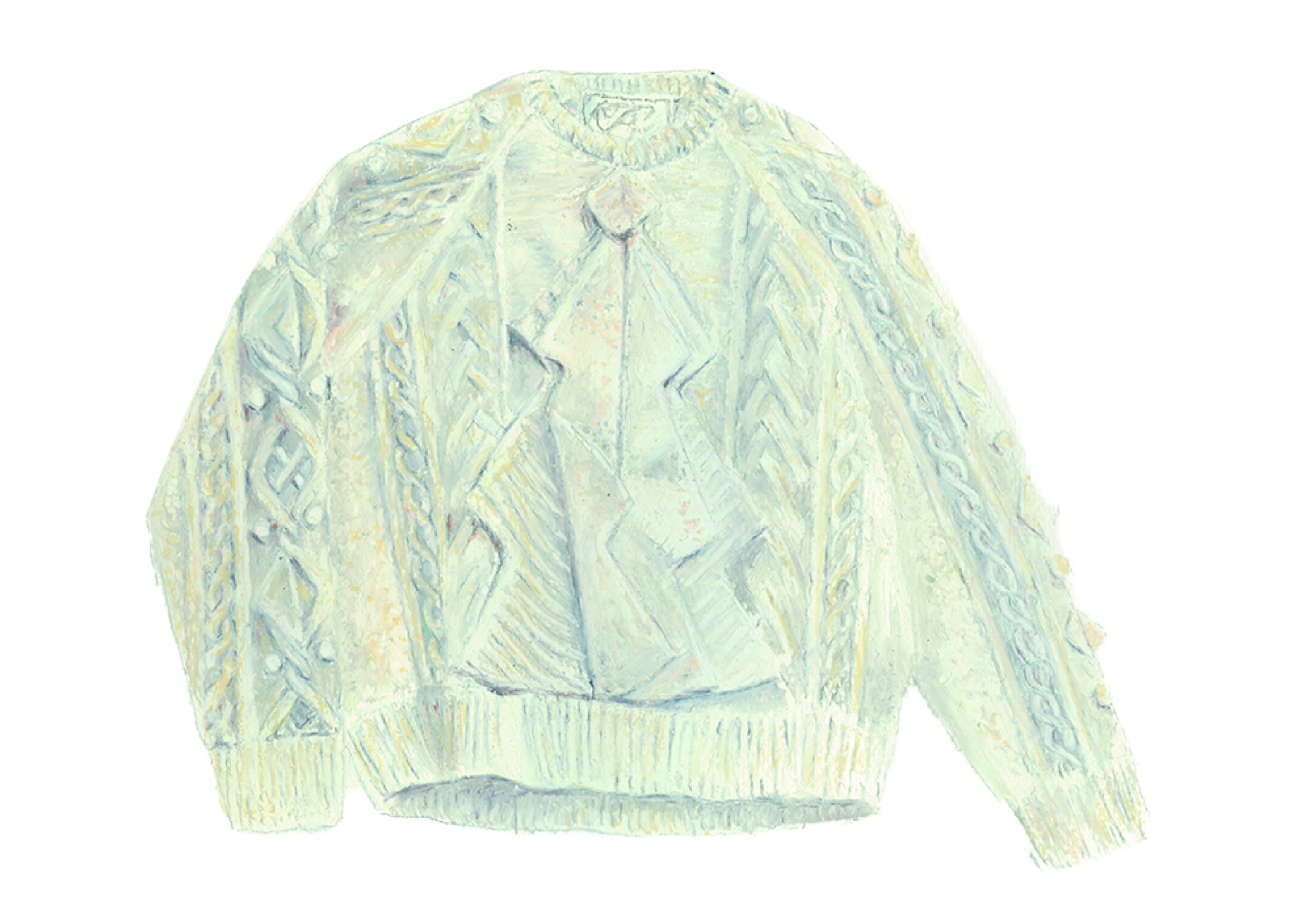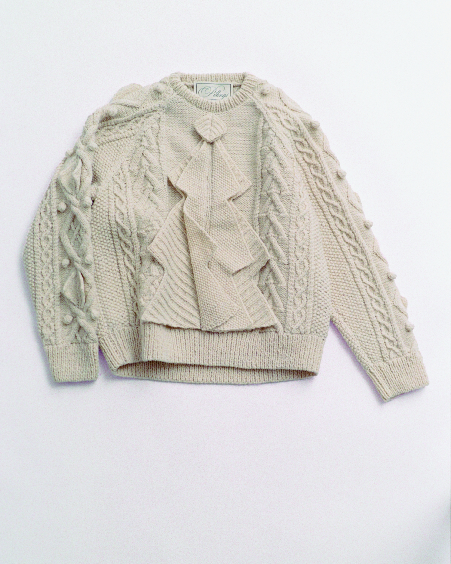 クリスマスリースのセーターも登場。ちりばめられた星モチーフが合わさって、表情豊かです。クリスマスツリーのせーたーは伝統的なアランセーターがベースです。