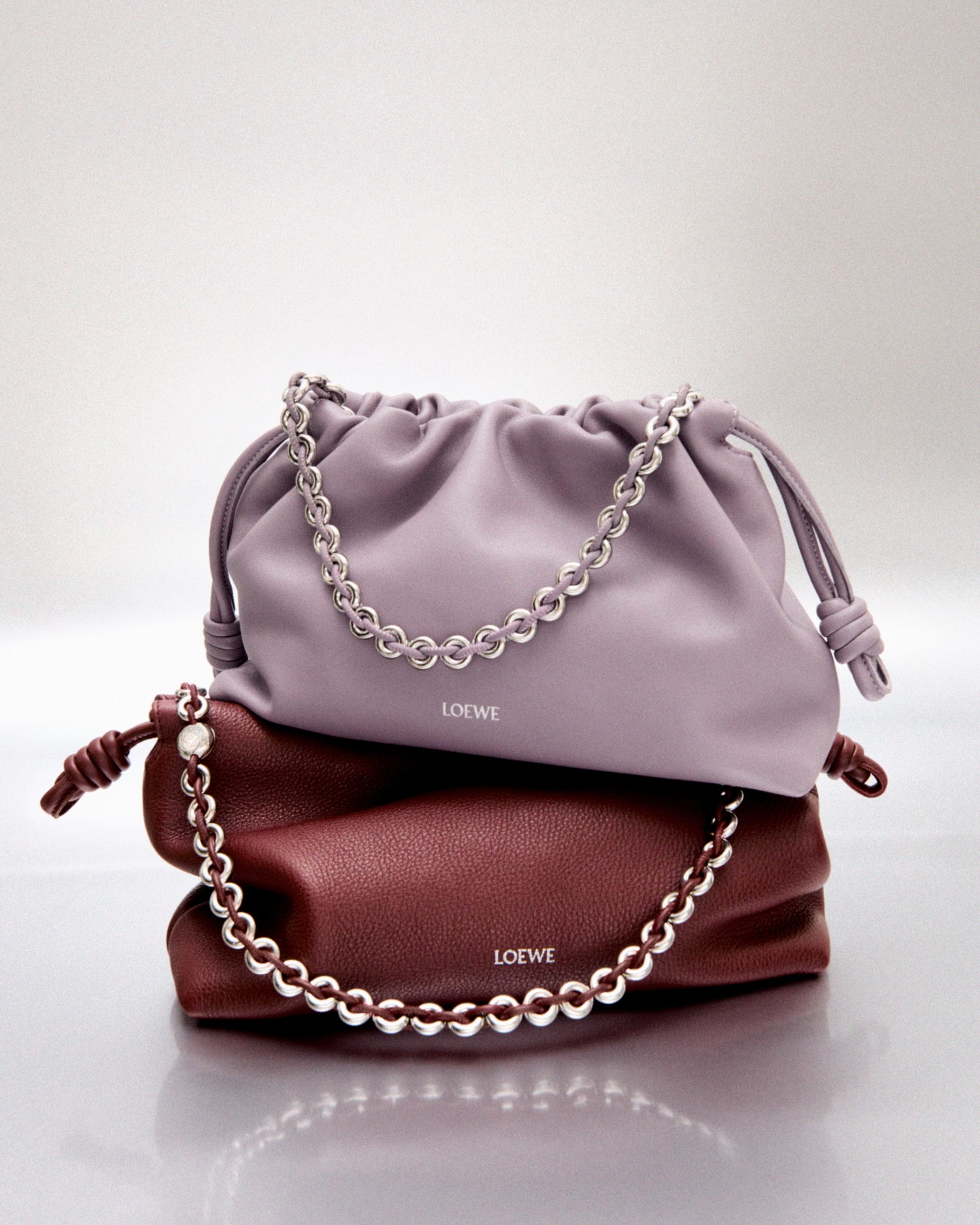 ロエベのシグネチャーバッグ「パズル」「フラメンコクラッチ」「アマソナ」には、インターシャや刺繍、プリント、トロンプルイユニットで描かれた猫モチーフが登場。新作「ホヤ ポーチ」は、カスタマイズ可能なダイスバーや調節ストラップを備えた遊び心あるデザインです。バッグには「ハンモック フリップ」「パズル パンタ」「フラメンコ」に加え、新作「ドレープ トート」もラインナップ。