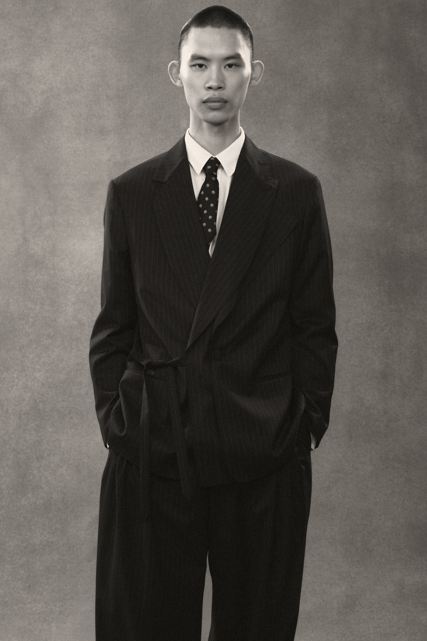 また、大月氏はカジュアルアイテムにもフォーマルルーツの素材を選択し、「テーラリングのバランスや細部の仕立てに細心の注意を払いました」とコメント。さらに「このコラボレーションを通じて、SOSHIOTSUKI単独では実現できなかった表現の幅を広げることができました」と語り、服を通した感情や絆の表現の可能性を探求しています。
