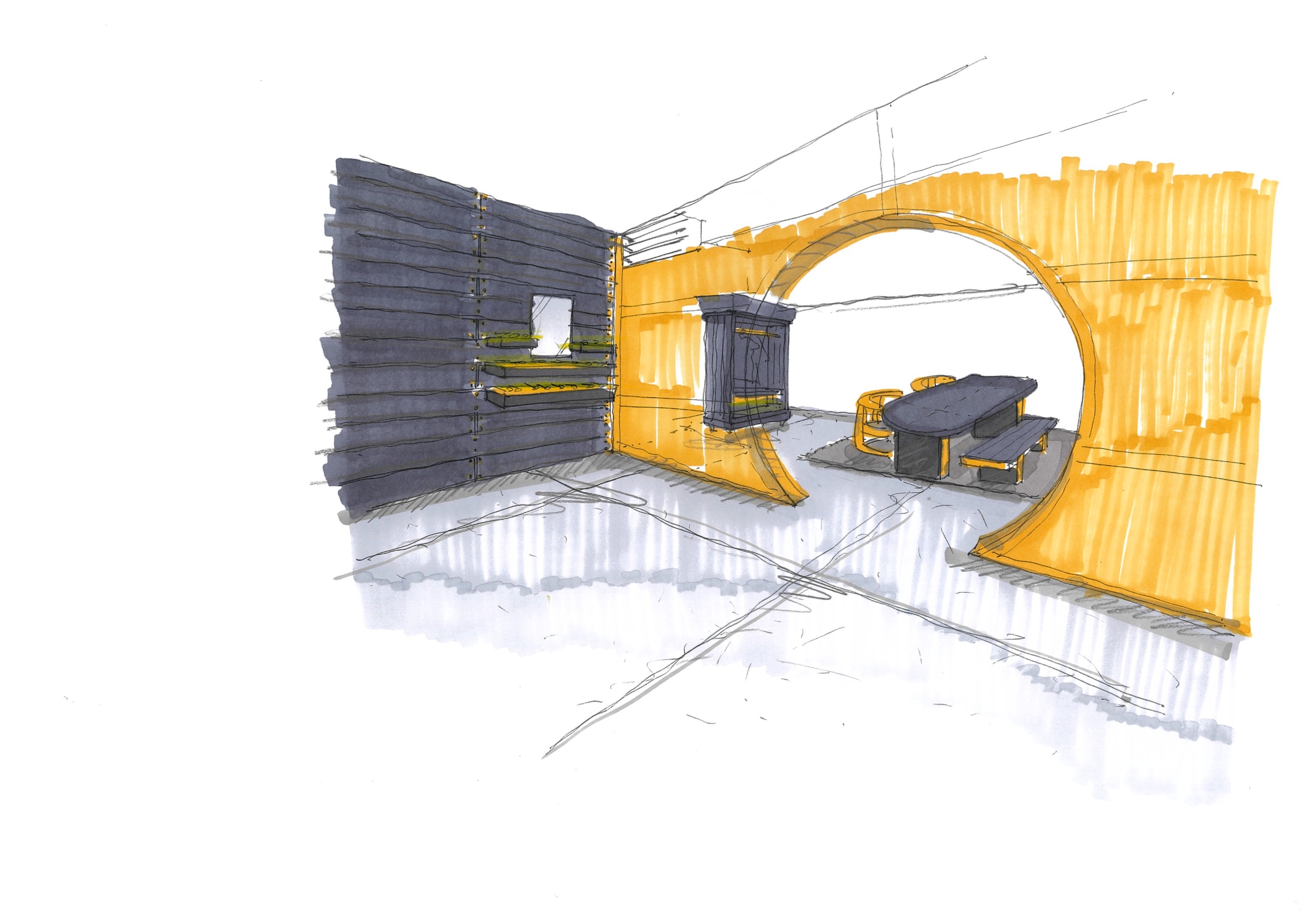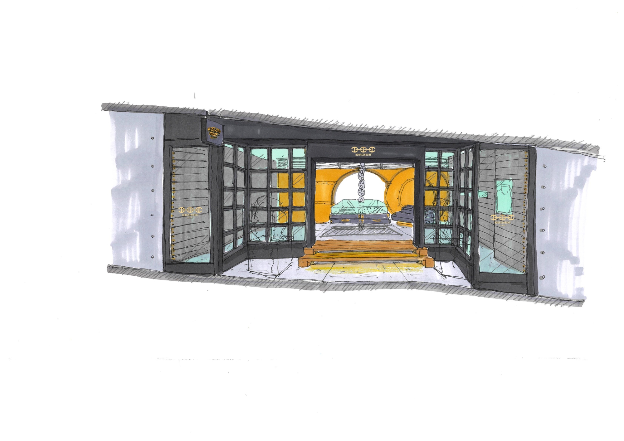 ブラックを基調とした店内は巨大なアンカーチェーンから吊るされた特注ケースをはじめ、ブラックウッドパネルや真鍮のディテールなど、LAの旗艦店にも通じるマテリアルを採用しています。