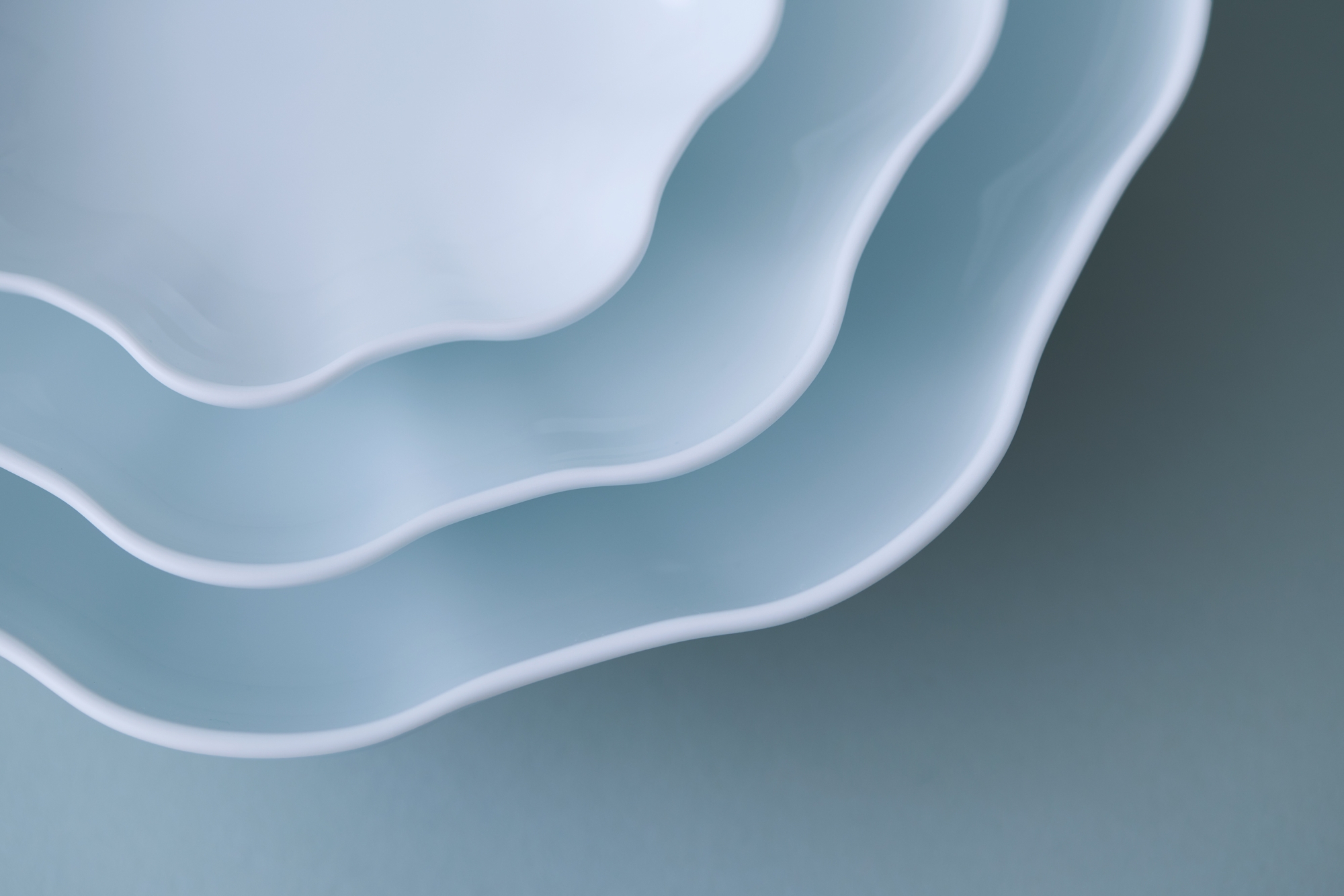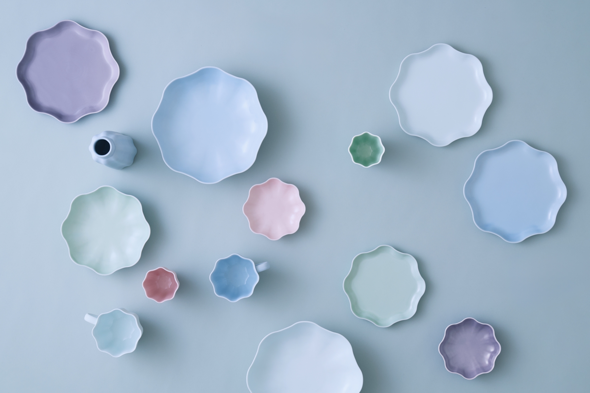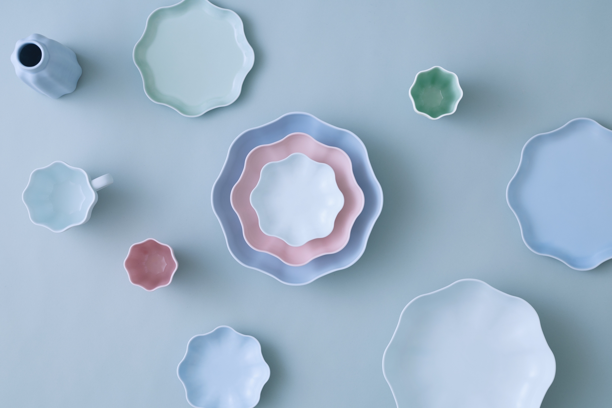 CFCLを象徴するPOTTERY SKIRTをモチーフに形づくられた器は計8型、5色展開です。電子レンジ、食洗機対応の日常使いしやすい機能性を備えています。