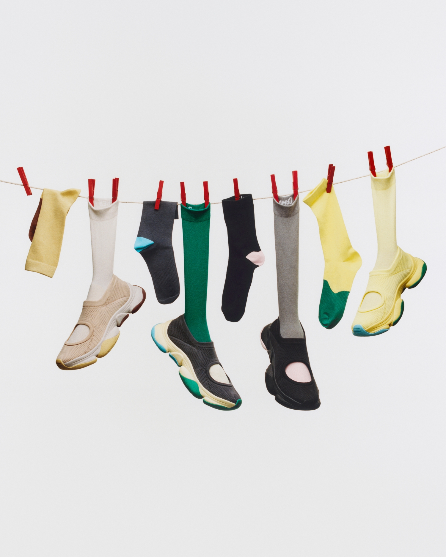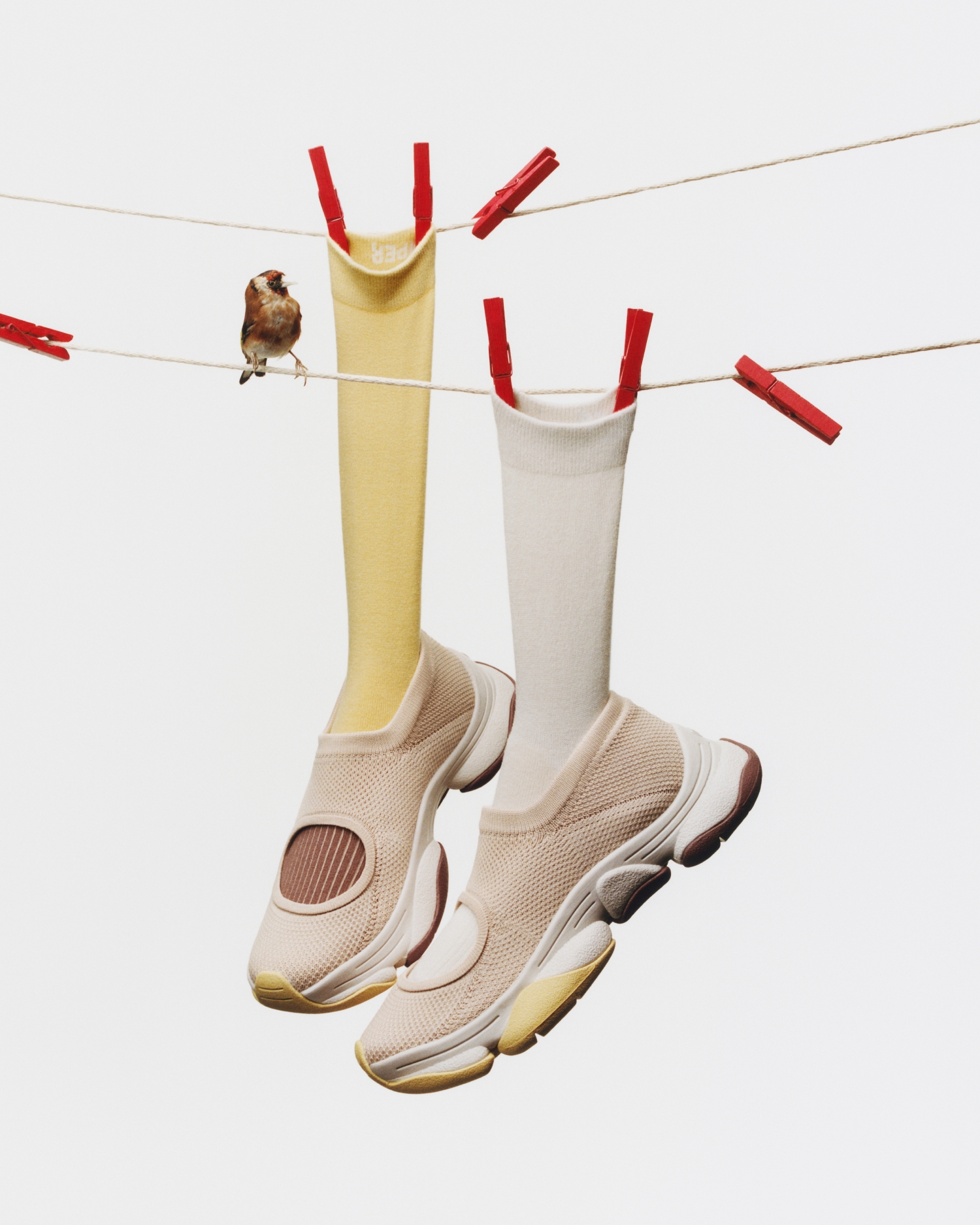 岩石地形に着想を得たCamperの「Karst」アウトソールに、軽量で伸縮性のあるアッパーを組み合わせたデザインです。豊かな4カラーバリエーションで、各シューズには、同系色またはコントラストカラーのソックスが2足ずつ付属し、自由な組み合わせを楽しめます。