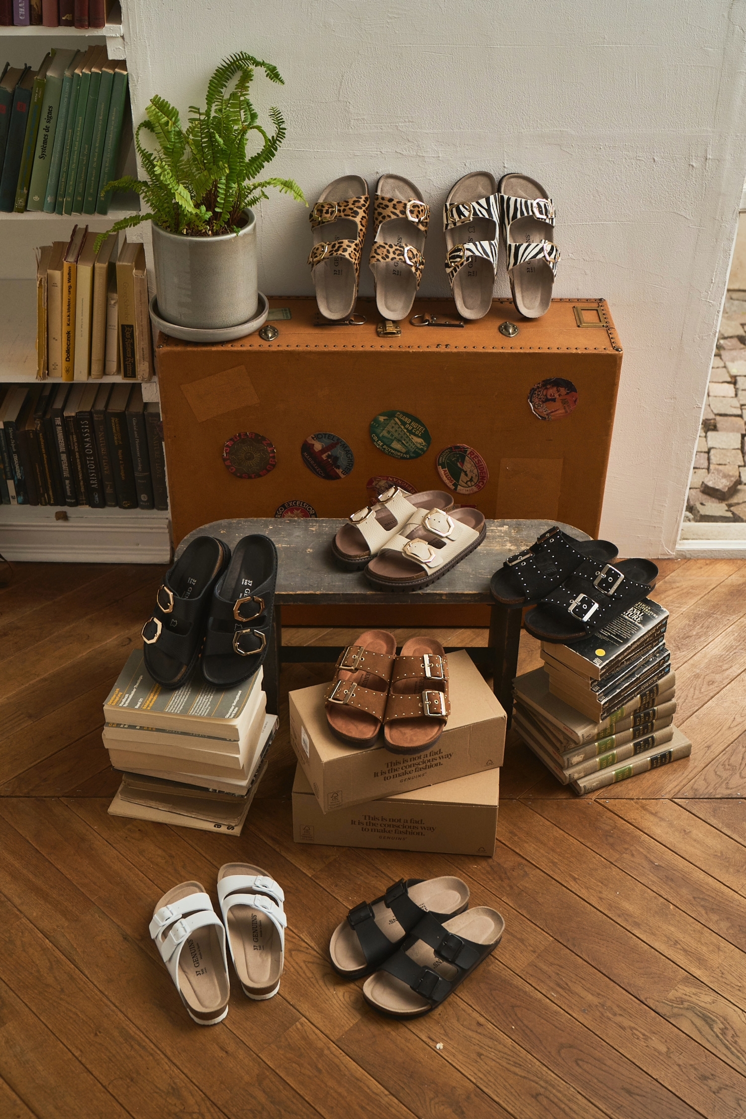 「GENUINS」は1940年創業のファクトリーをルーツに持ち、2014年に誕生しました。スペインの靴づくりの伝統と現代的な感性を融合させ、デザイン性と快適性、そしてサステナビリティを兼ね備えたフットウェアを提案しています。