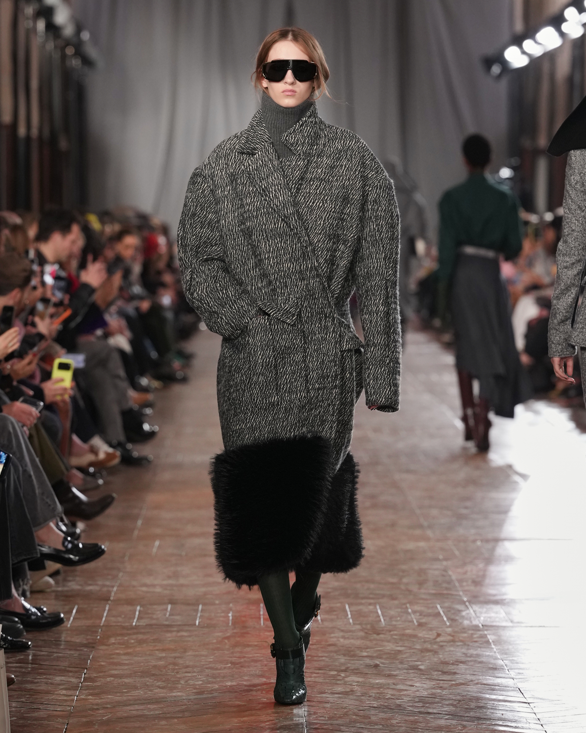 今回のコレクションでは、カジュアルとフォーマル、昼と夜の境界を行き来するスタイリングが特徴的です。メンズウェアに着想を得たテーラードジャケットやコートは、タックやダーツ、シャーリングによって身体に寄り添うよう再構築されました。ウエストラインを強調したシルエットへと昇華されています。袖には立体的な構造が与えられ、ボリューム感のあるフォルムがアクセントとなりました。