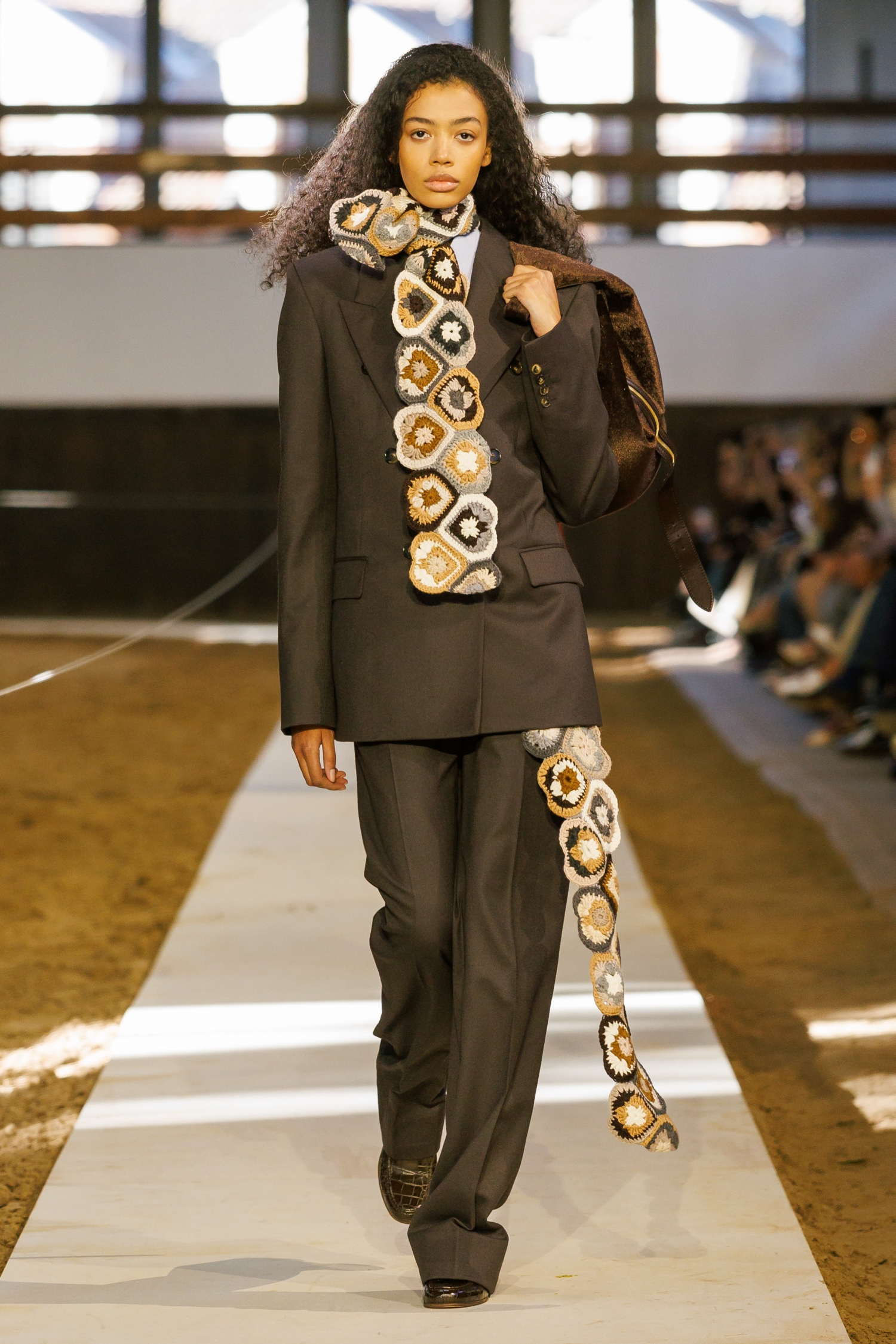 会場には馬が登場し、人と動物のつながりを象徴する演出が施されました。ブランドが掲げてきた動物愛護の思想ともリンクする舞台設定です。