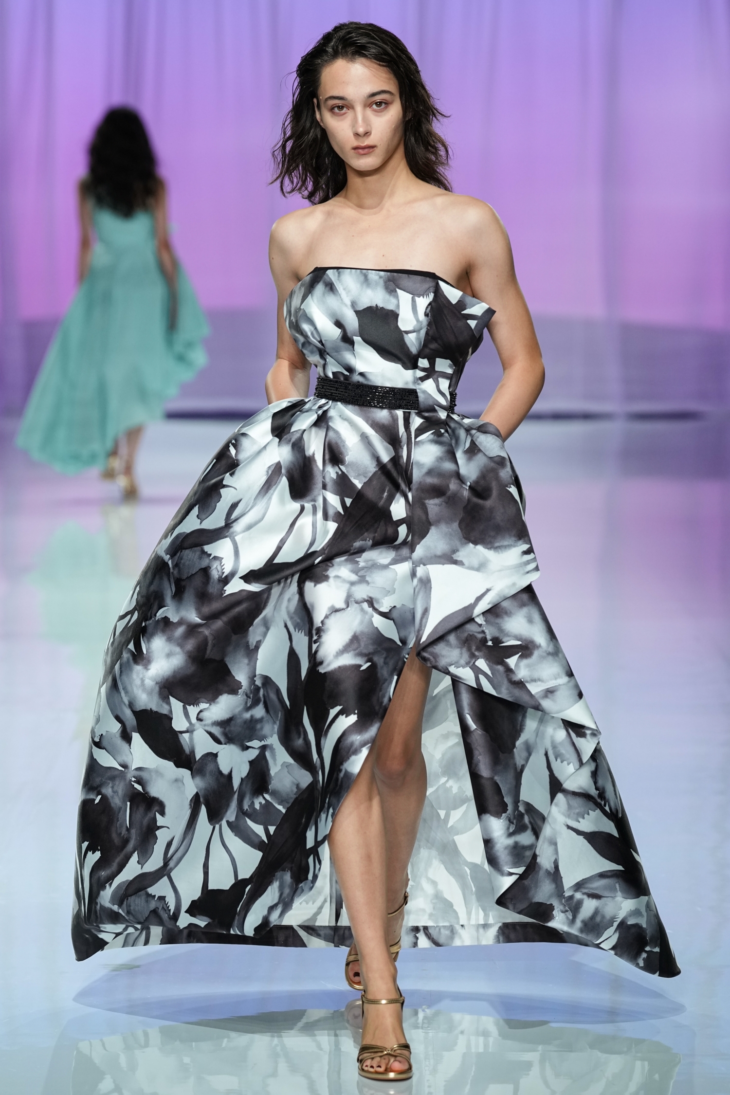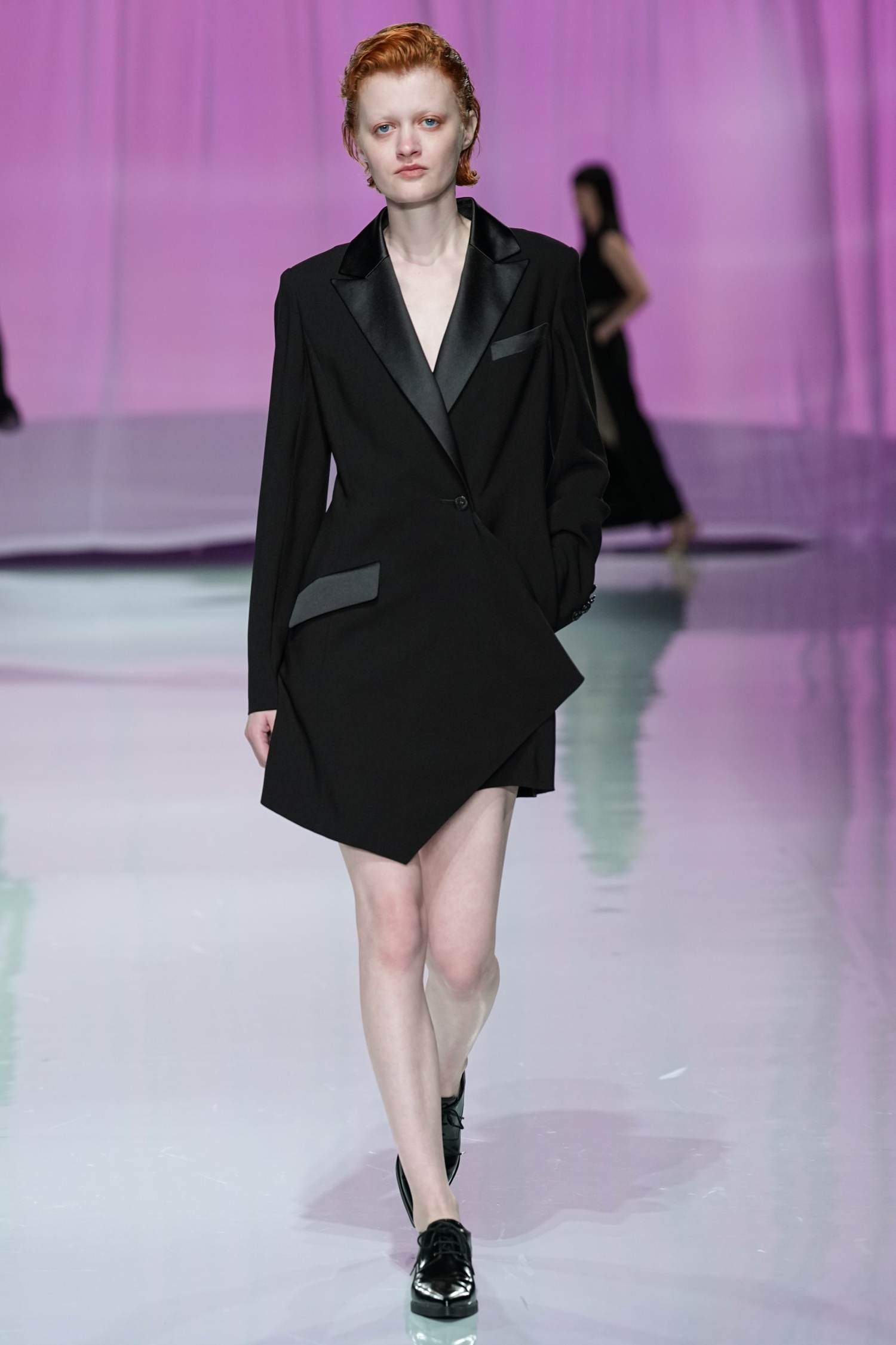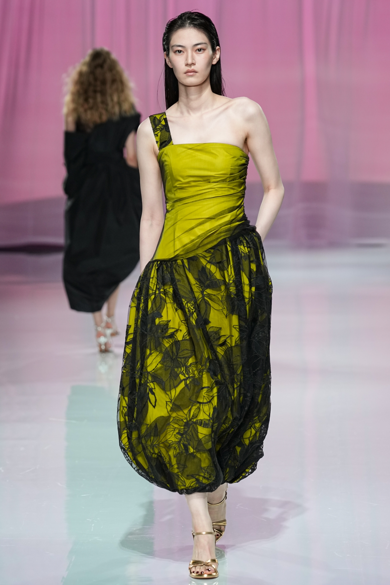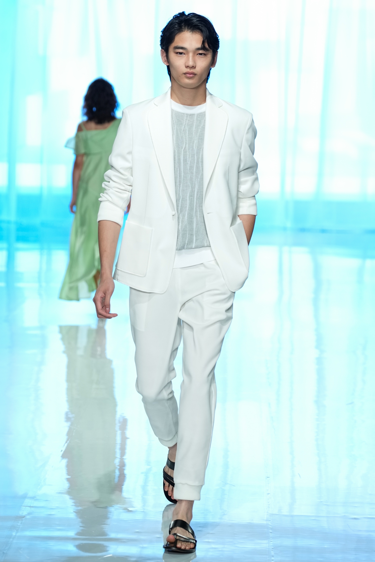 ジャケットやシャツの袖をたくし上げた軽快な着こなしや、リボンでウエストをゆるやかにマークしたシルエットは、かっちりしすぎない自然体のエレガンスを表現していました。リラックスとドレッシーが溶け合い、涼やかさときちんと感の両方が手に入るバランス感覚が印象的です。