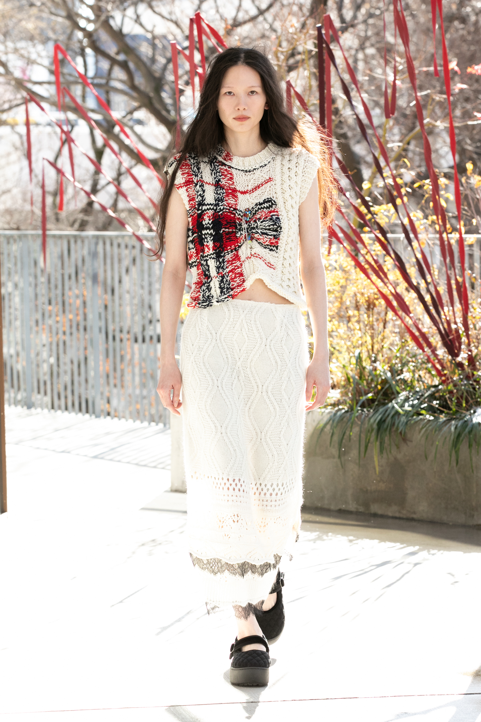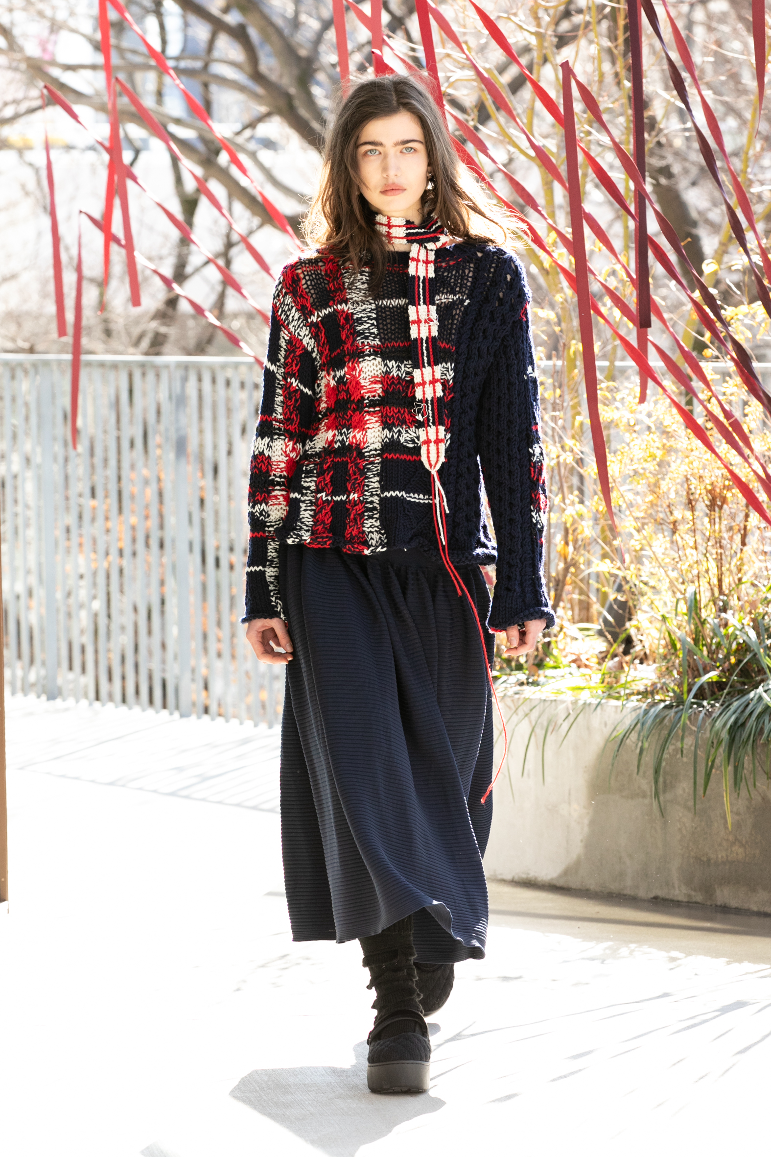 ニットは身体の動きに応じて伸び、形を変え続ける素材です。完成形を固定するのではなく、着る人の中で常に更新されていく。穏やかに見えて、内側では確かに動いている。そういった感覚をニットで表現するコレクションは、ニットの可能性を証明していました。