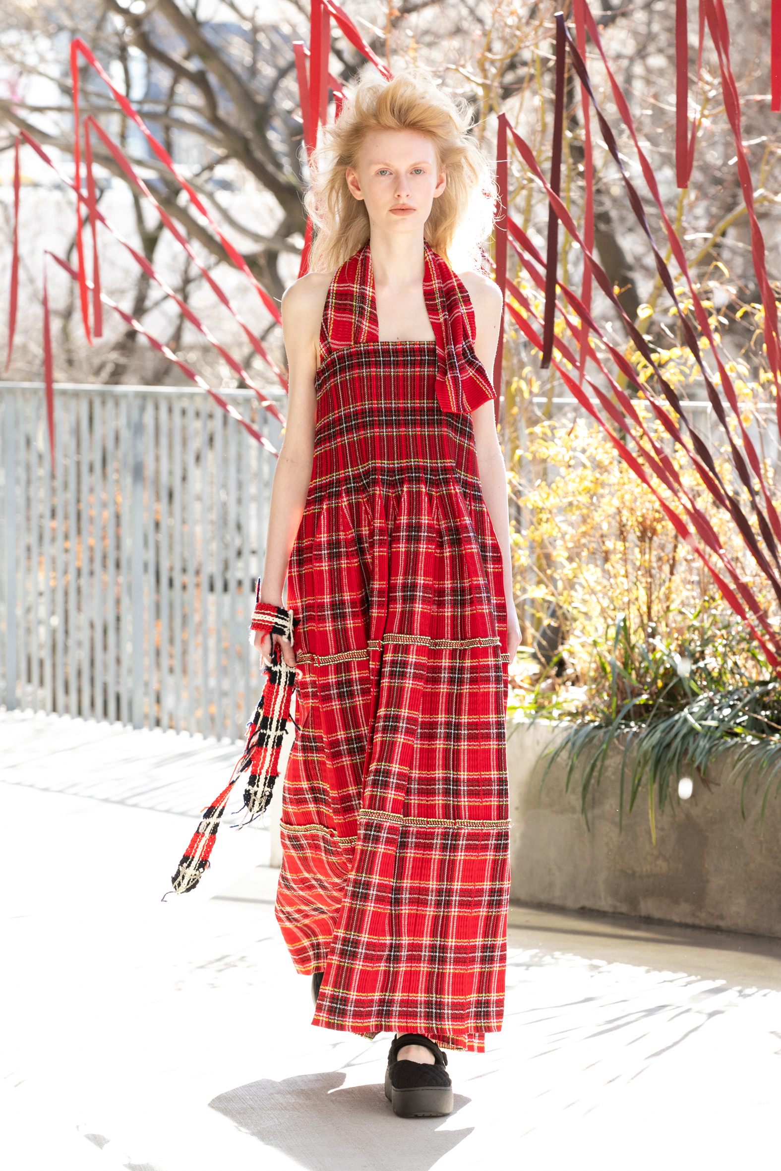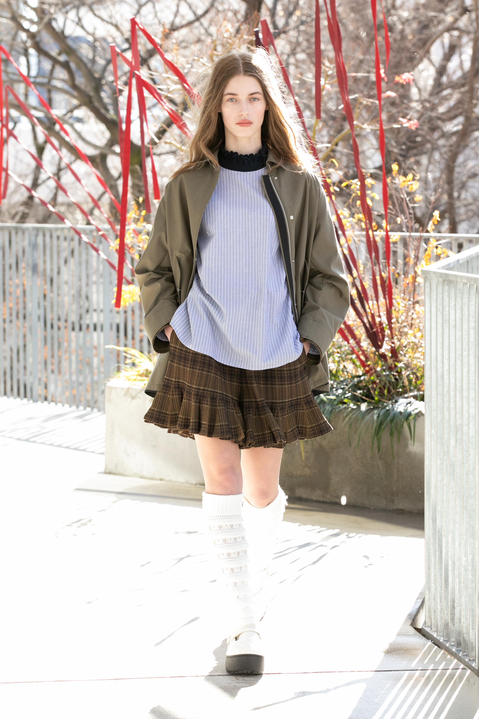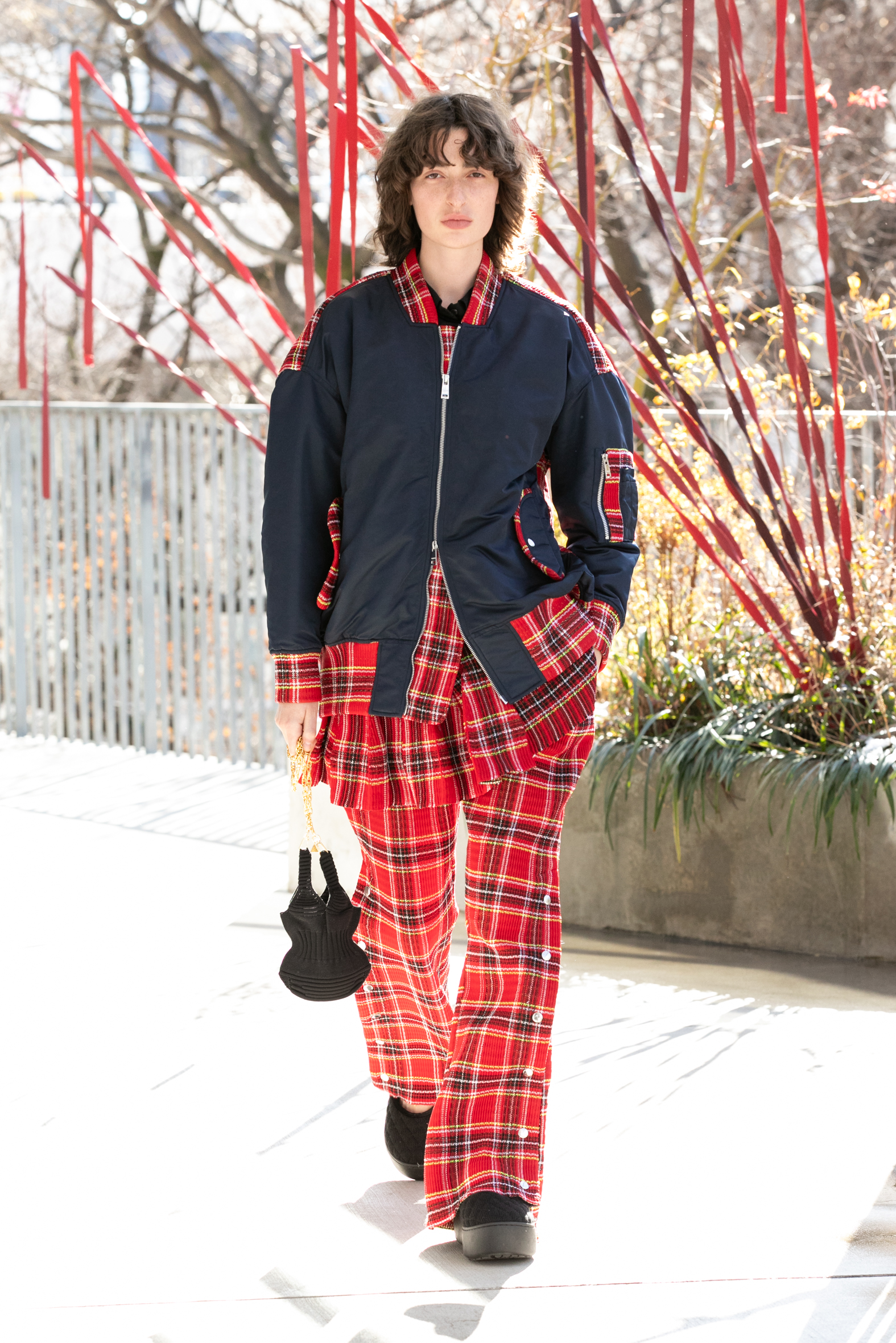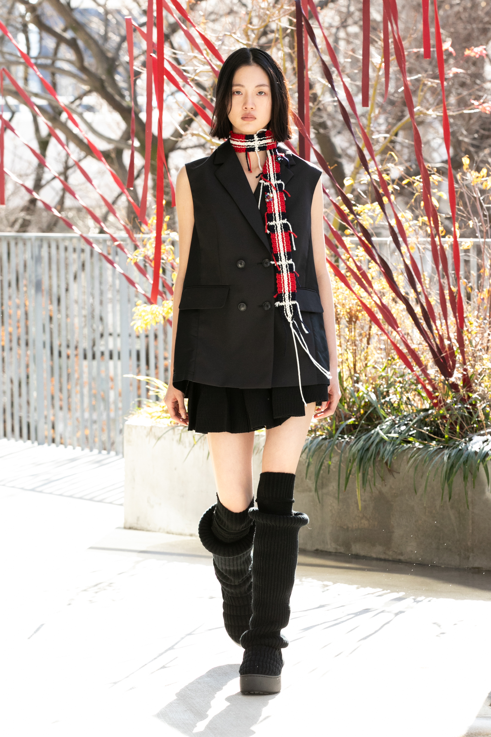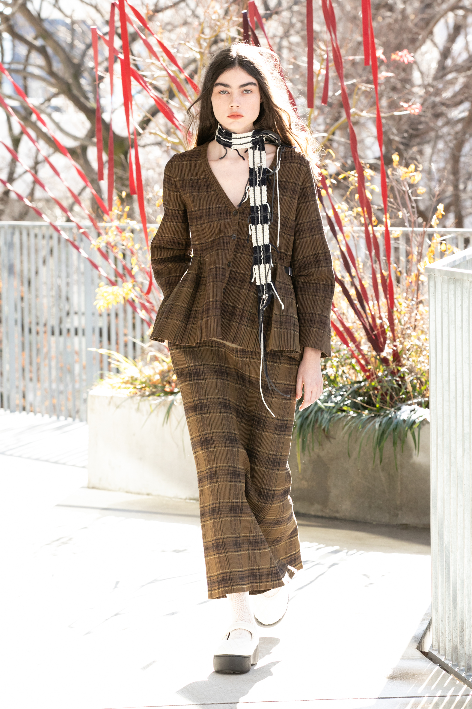 「布帛に見えて、実はニット」という高度なテクニックが続々と披露されました。ぱっと見は端正な織物のように見えるのに、実際にはすべてがニットで構築されています。ニットで魅せるデザイナーであることをあらためて強く印象づけました。