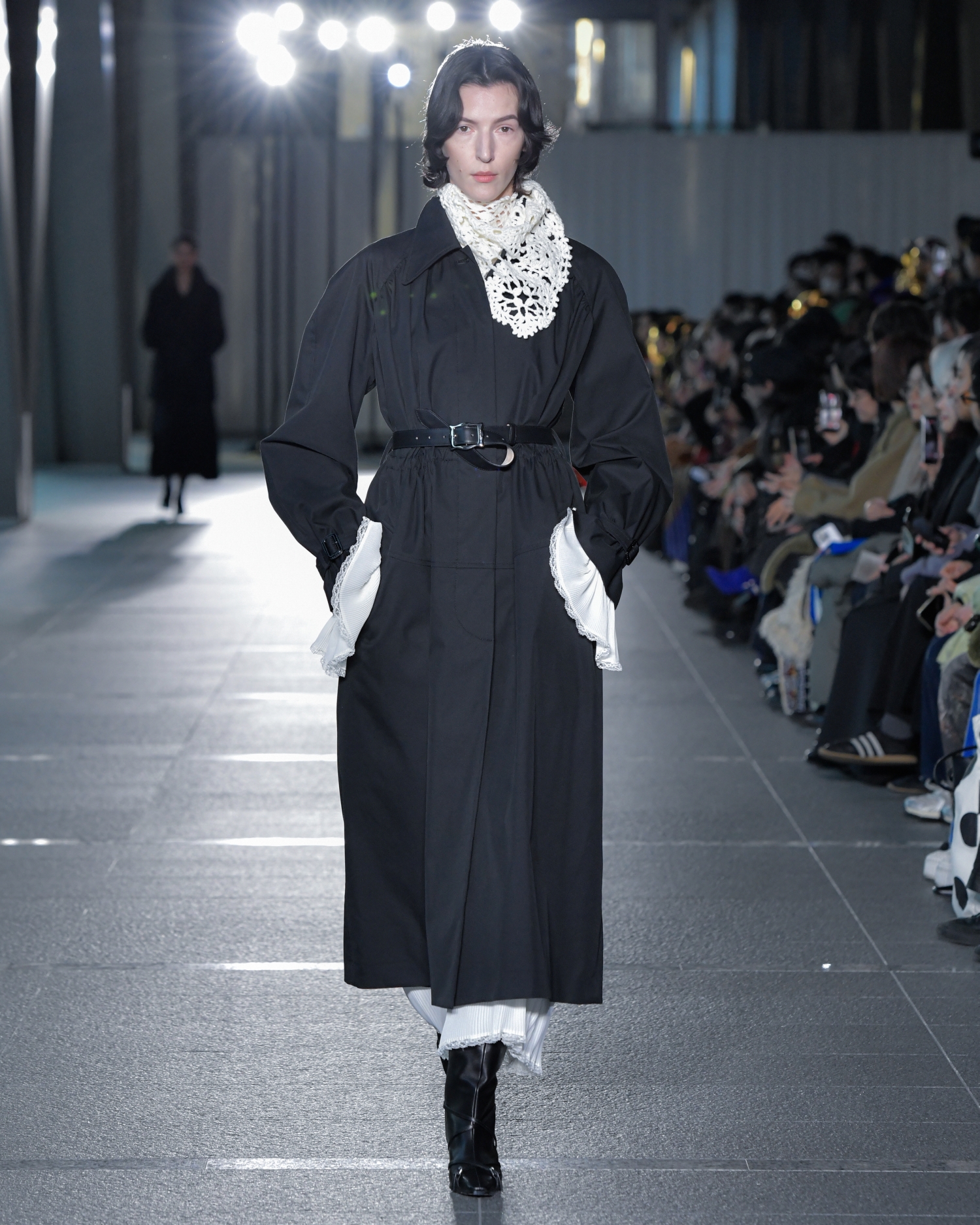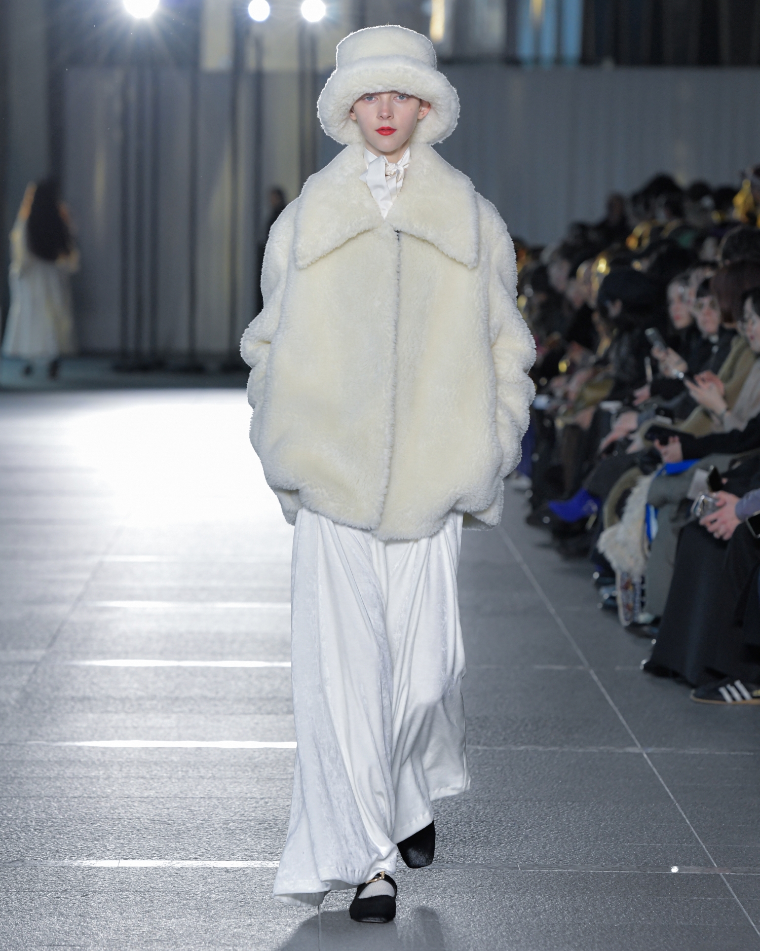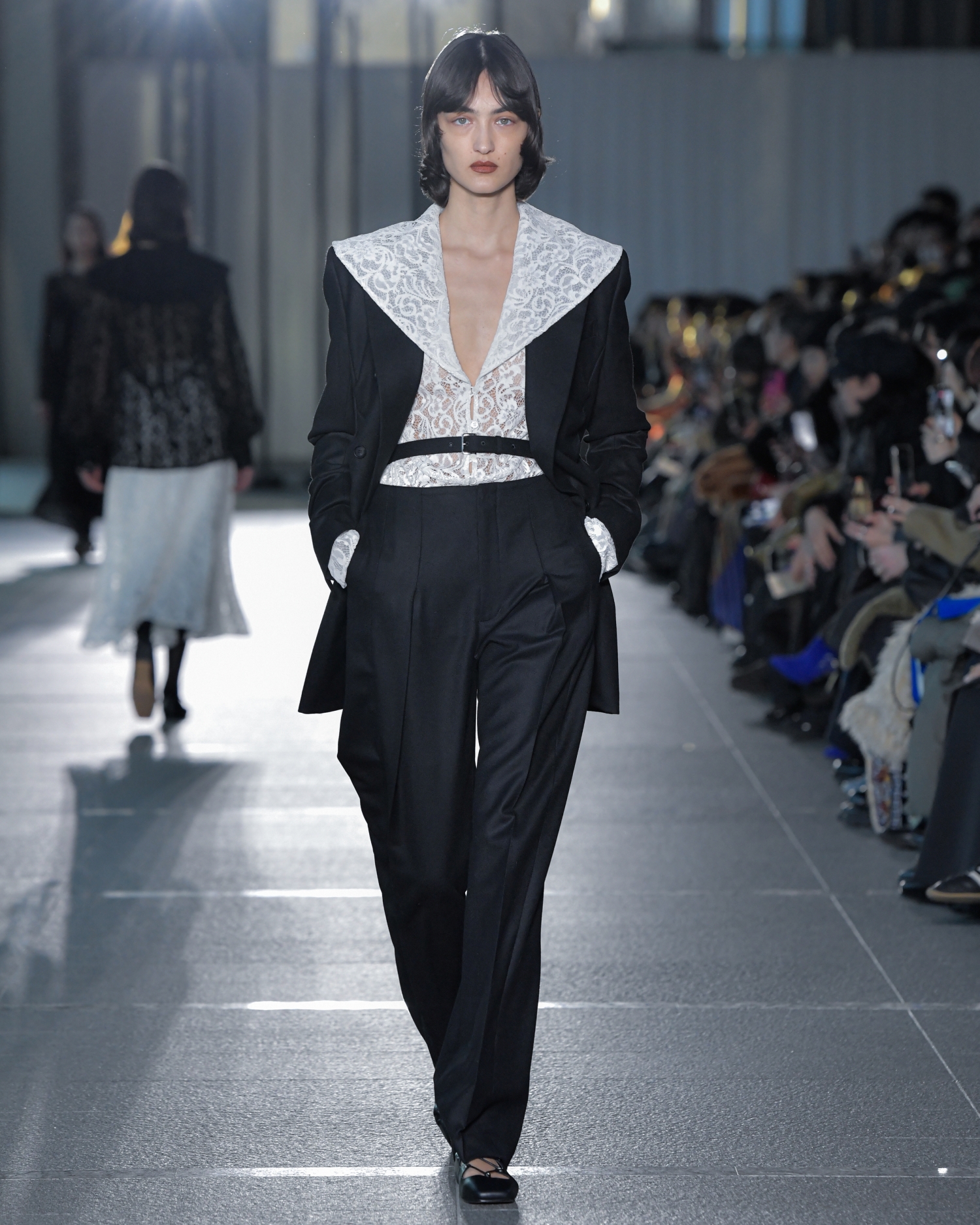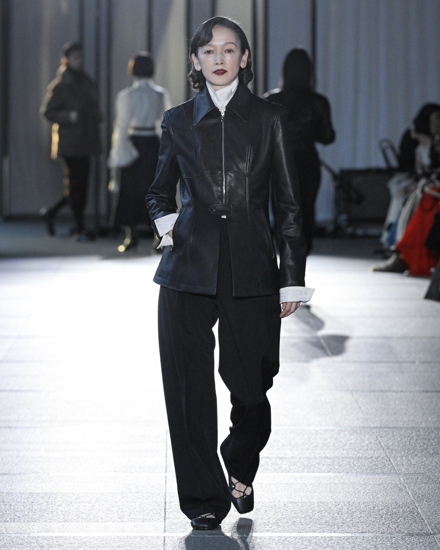 印象的だったのは、テーラリングとランジェリー、実用性と官能性の共存です。ブランドの核である身体を美しく見せるラインやランジェリー由来のディテールはそのままに、より構築的なフォルムへと進化。フェティコらしい曲線美を残しながら、芯のある佇まいが際立っていました。