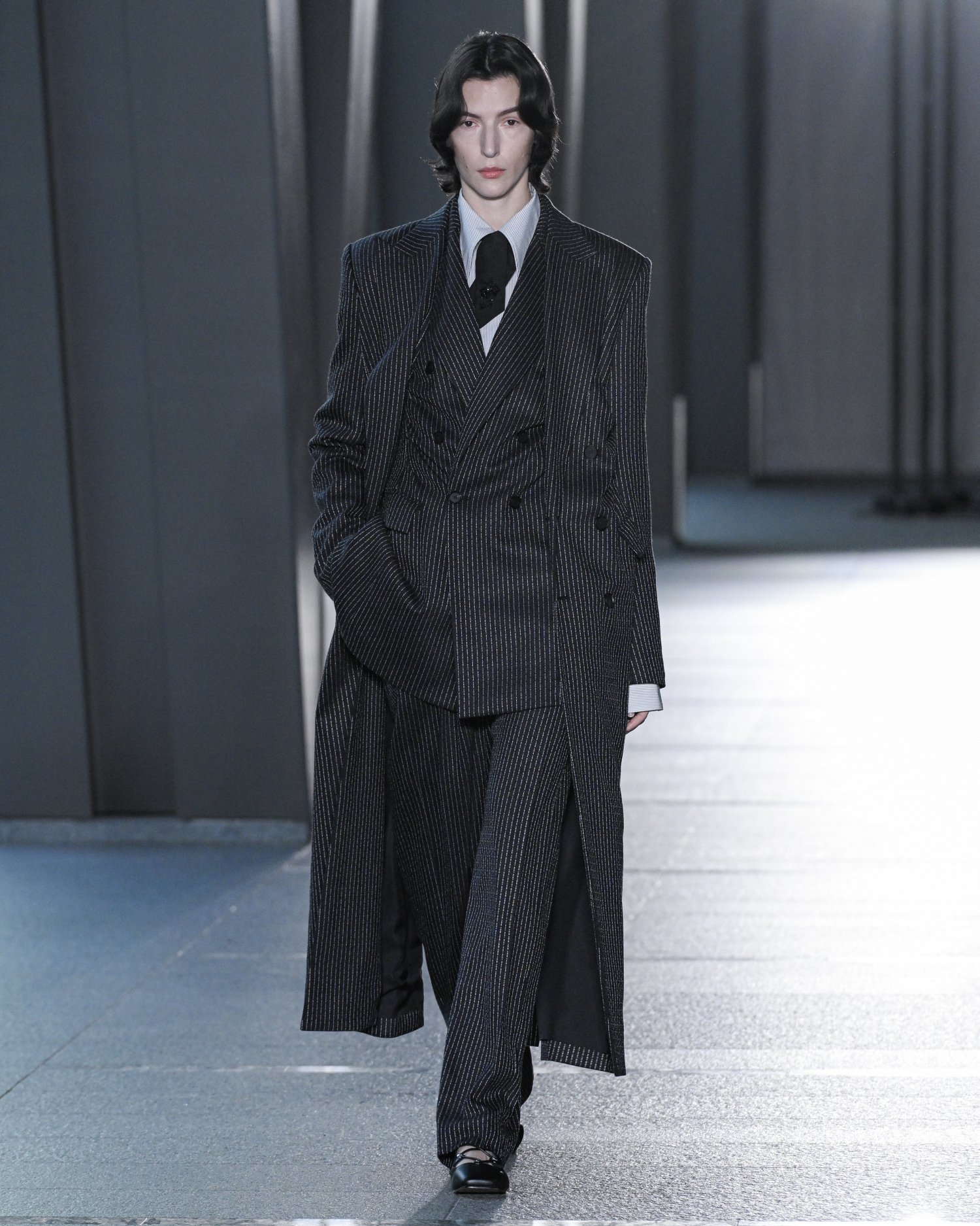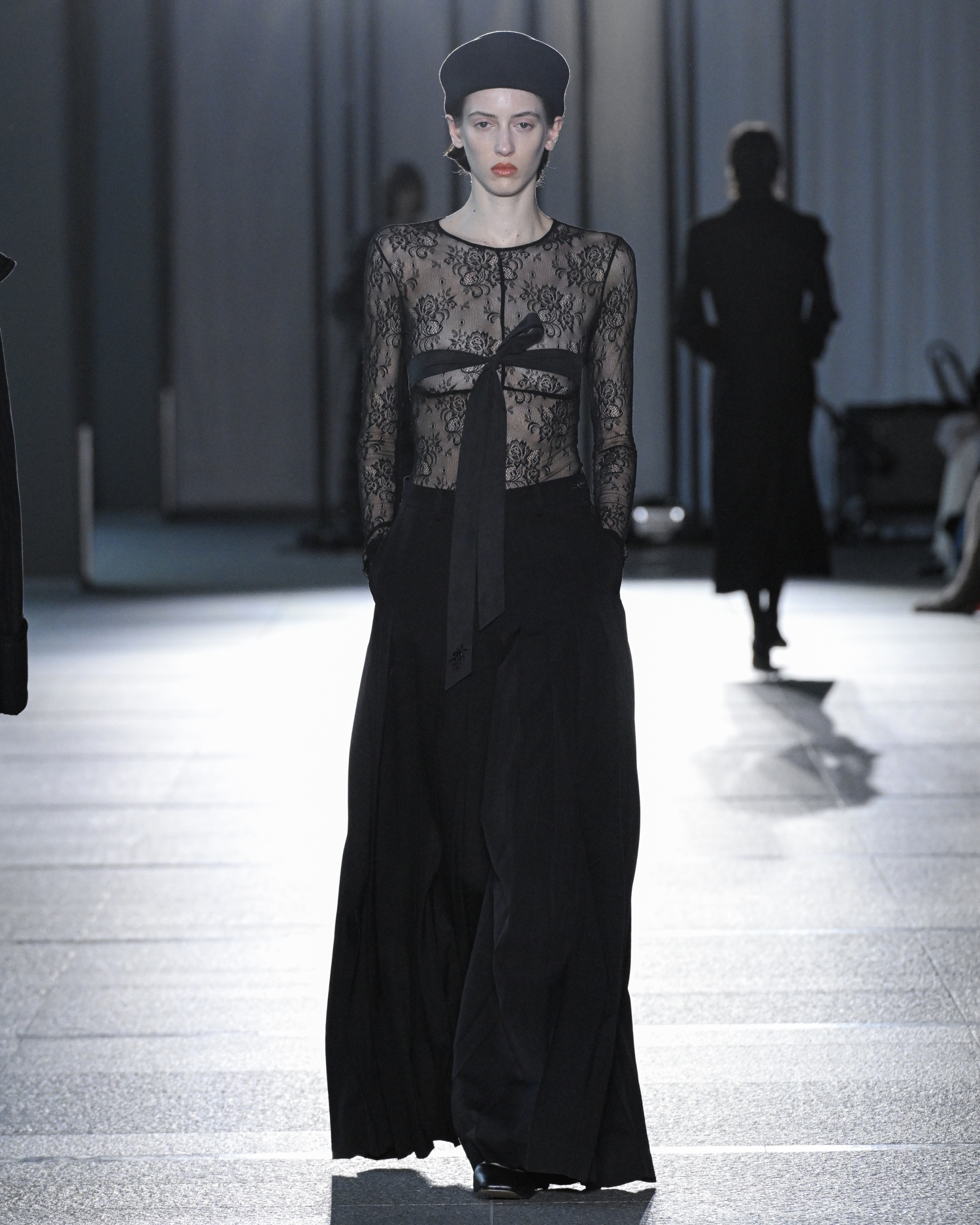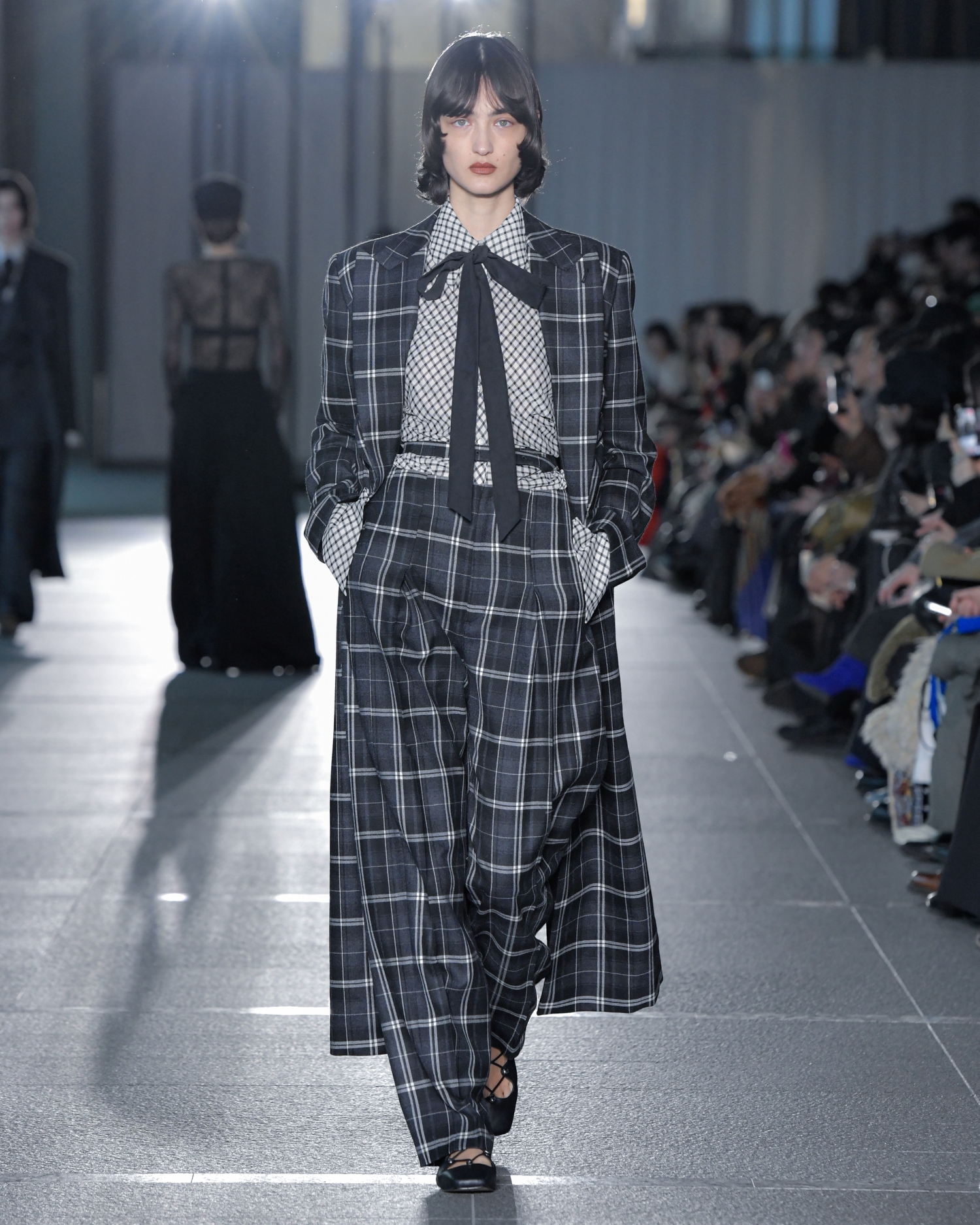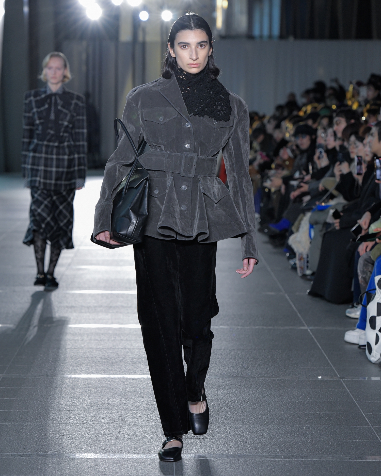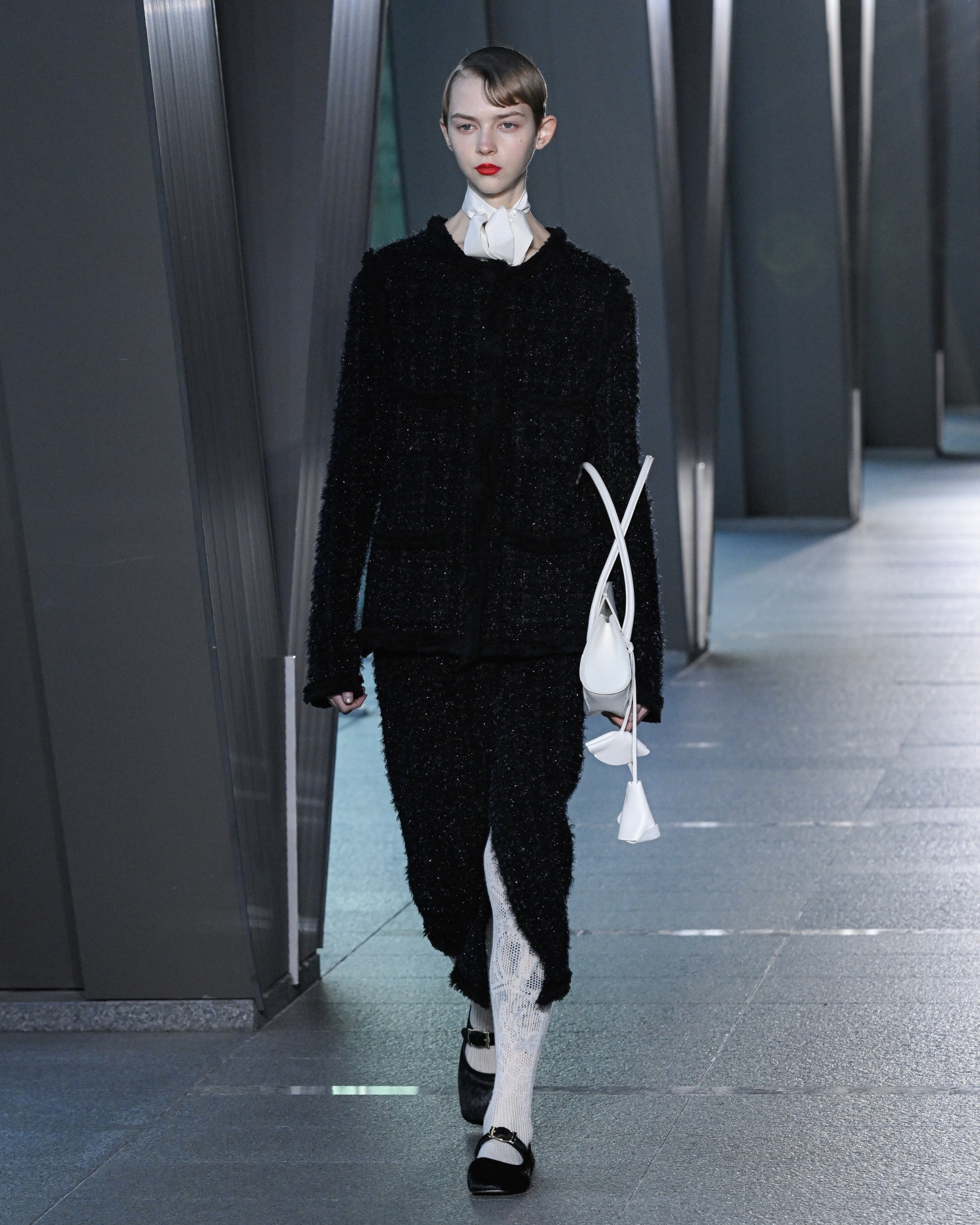 印象的だったのは、テーラリングとランジェリー、実用性と官能性の共存です。ブランドの核である身体を美しく見せるラインやランジェリー由来のディテールはそのままに、より構築的なフォルムへと進化。フェティコらしい曲線美を残しながら、芯のある佇まいが際立っていました。