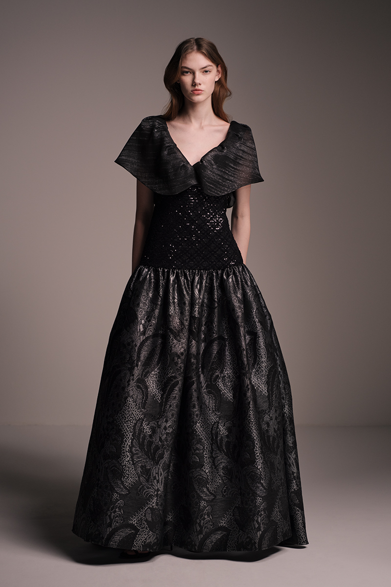 上質な素材使いと繊細な装飾、そして構築的なシルエットによって、現代女性のエレガンスを多面的に描き出しました。クラシックを軸にしながらも、グラフィカルな表現や軽やかな動きを取り入れています。