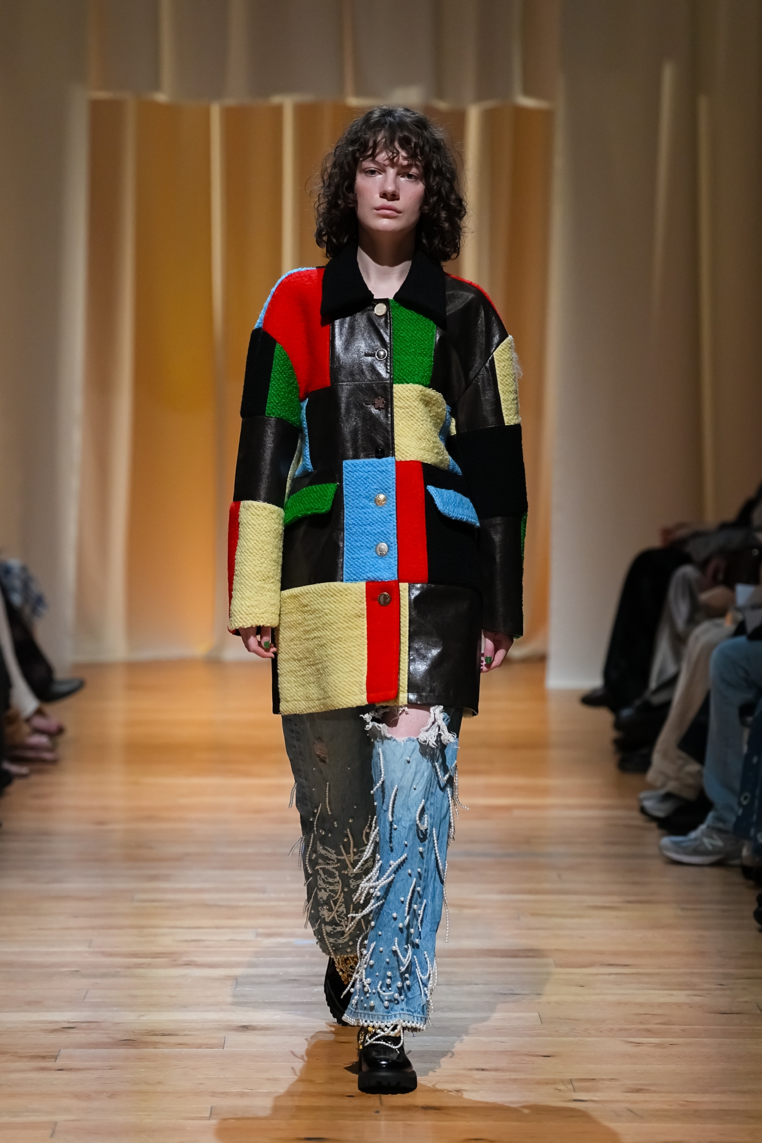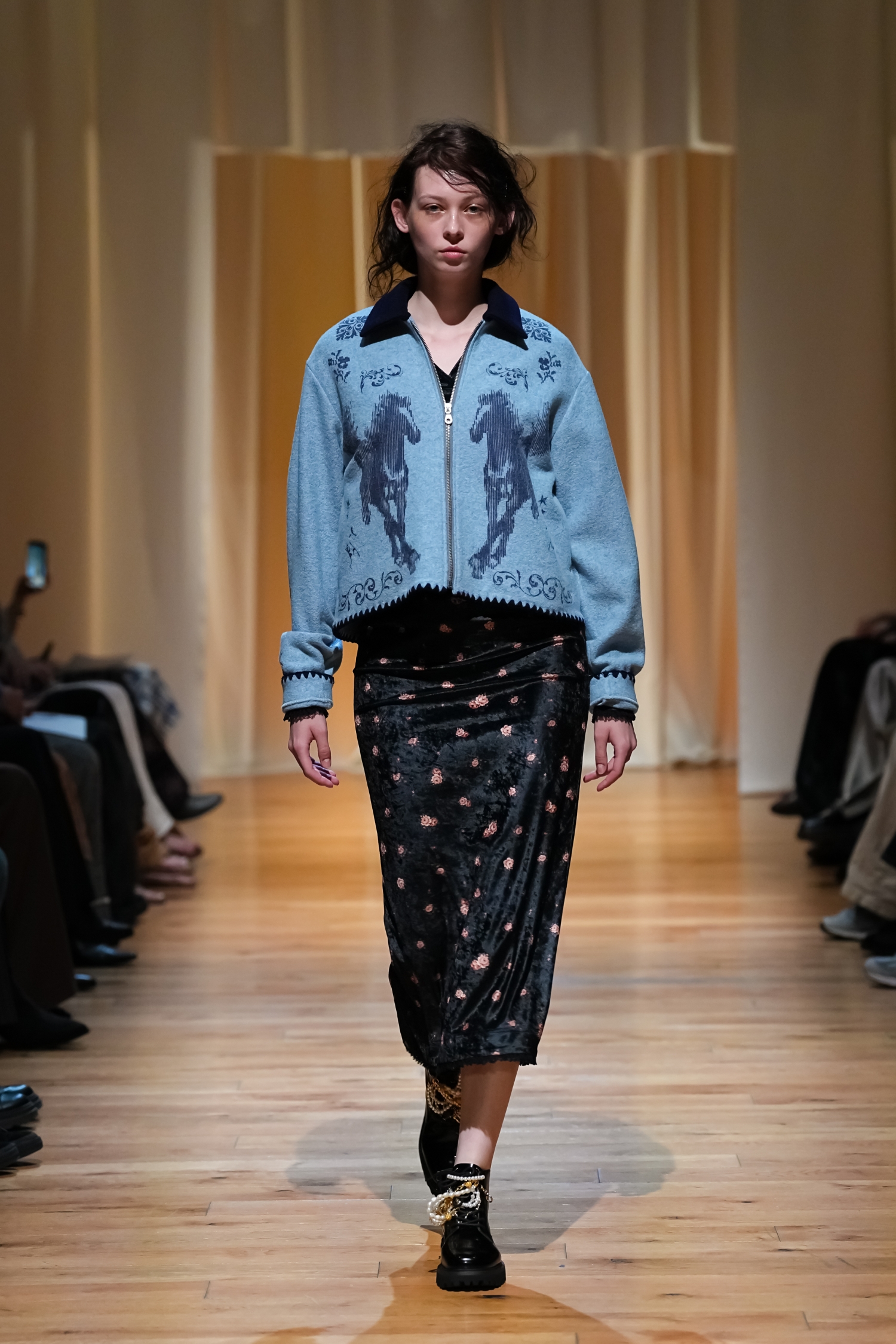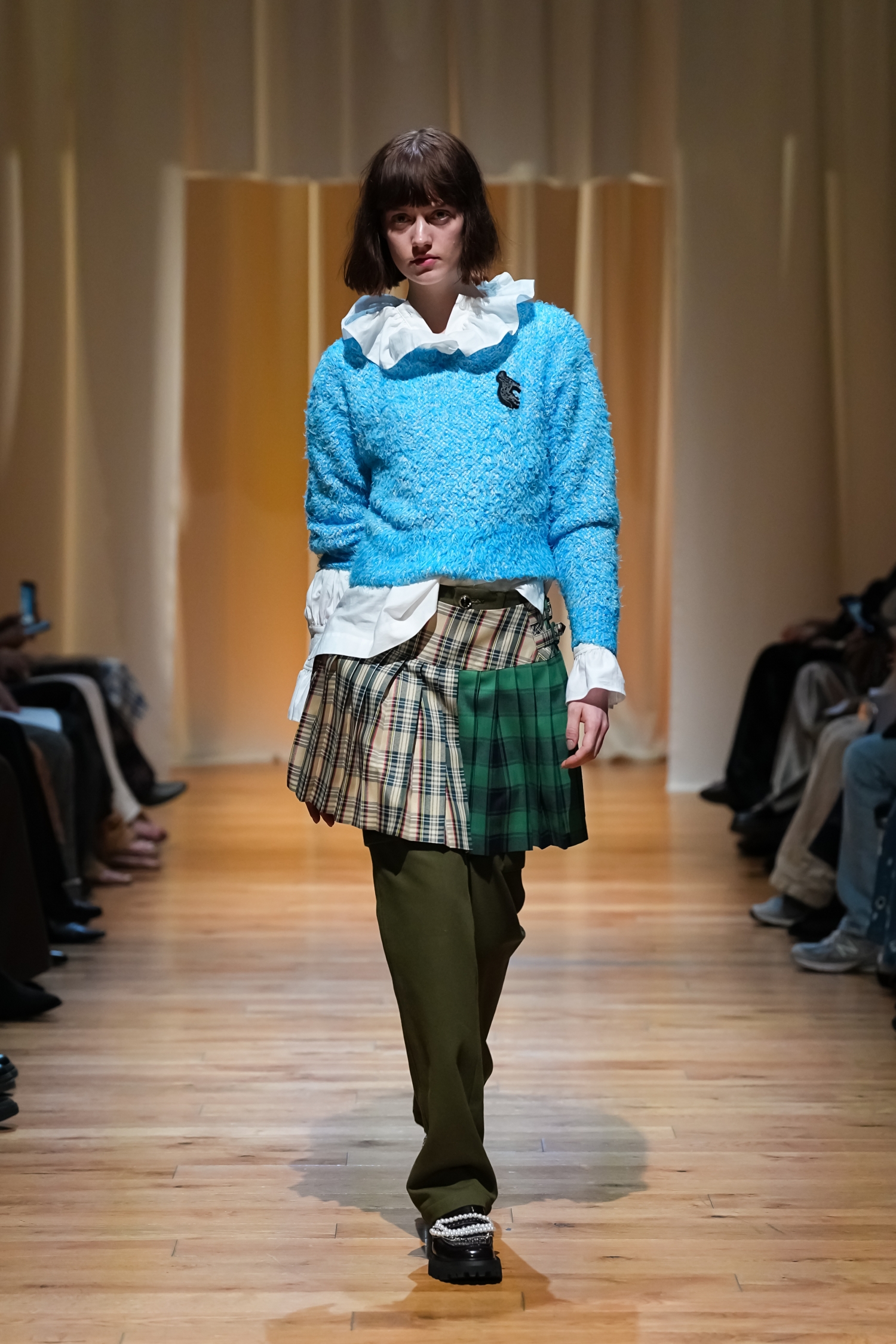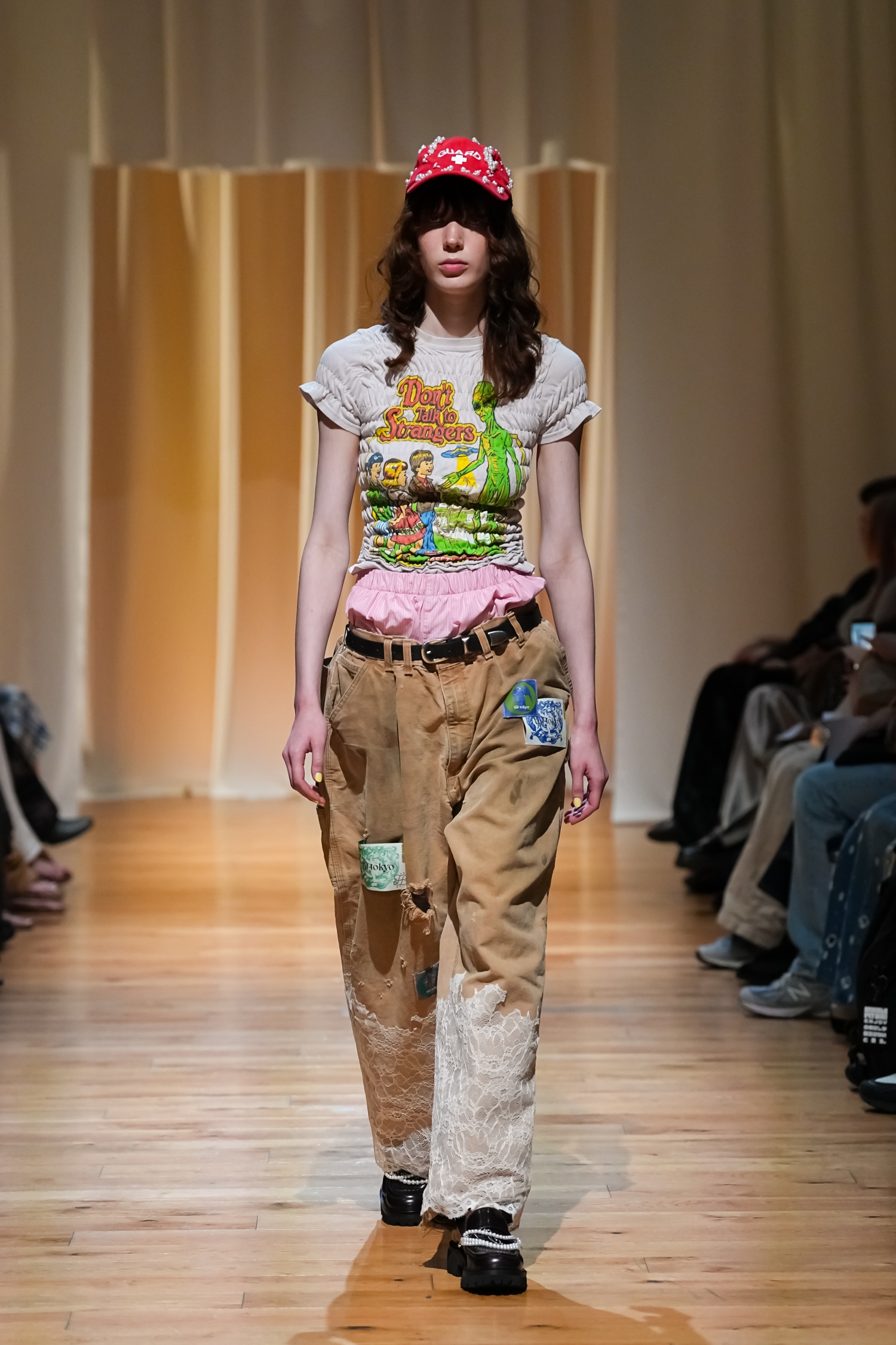 ヴィンテージ感を帯びた柔らかな空気感が漂います。パールモチーフをちりばめた装飾や、あえてシワを残したテクスチャー、無造作っぽく重ねたレイヤードによって、作り込みすぎない自然体テイストを表現しました。一方で、スポーティーやユニフォームの要素をミックスすることで、これまでよりもカジュアルで軽やかな表情にアップデートされています。