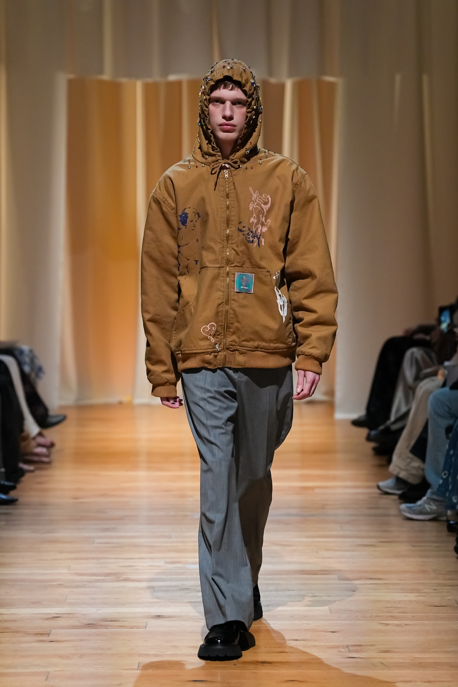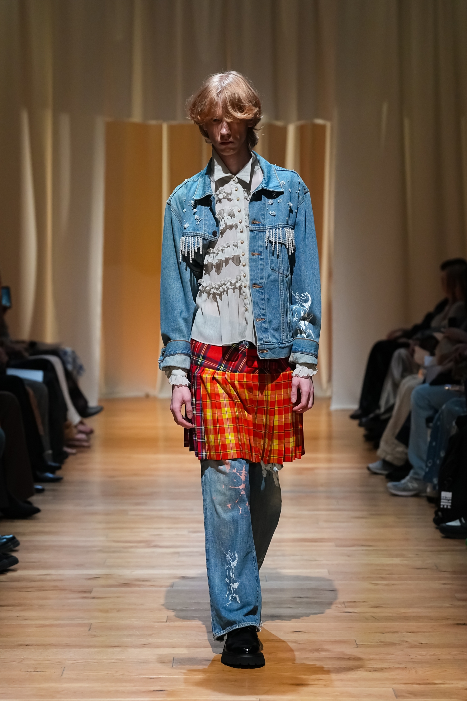 ディテールに遊び心が光ります。馬のモチーフが軽やかなアクセントとなり、ボタンをふんだんにあしらったキャップや、古着をリメイクしたかのようなアレンジがスタイリングに奥行きをもたらしました。メンズモデルも登場。60年代のアメリカに漂う自由な着こなしの空気感を、「tiit tokyo」らしい感性で現代的に表現しました。