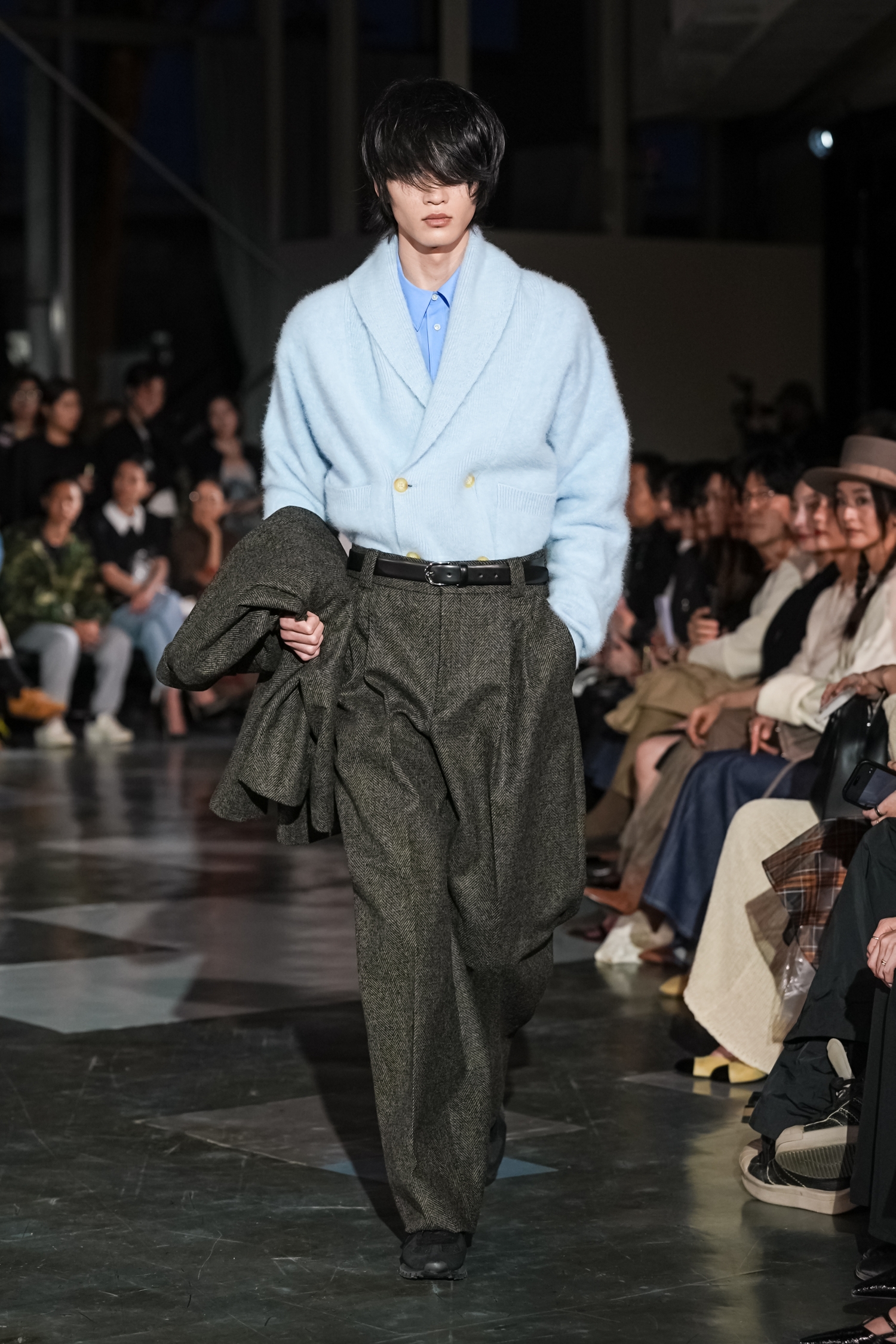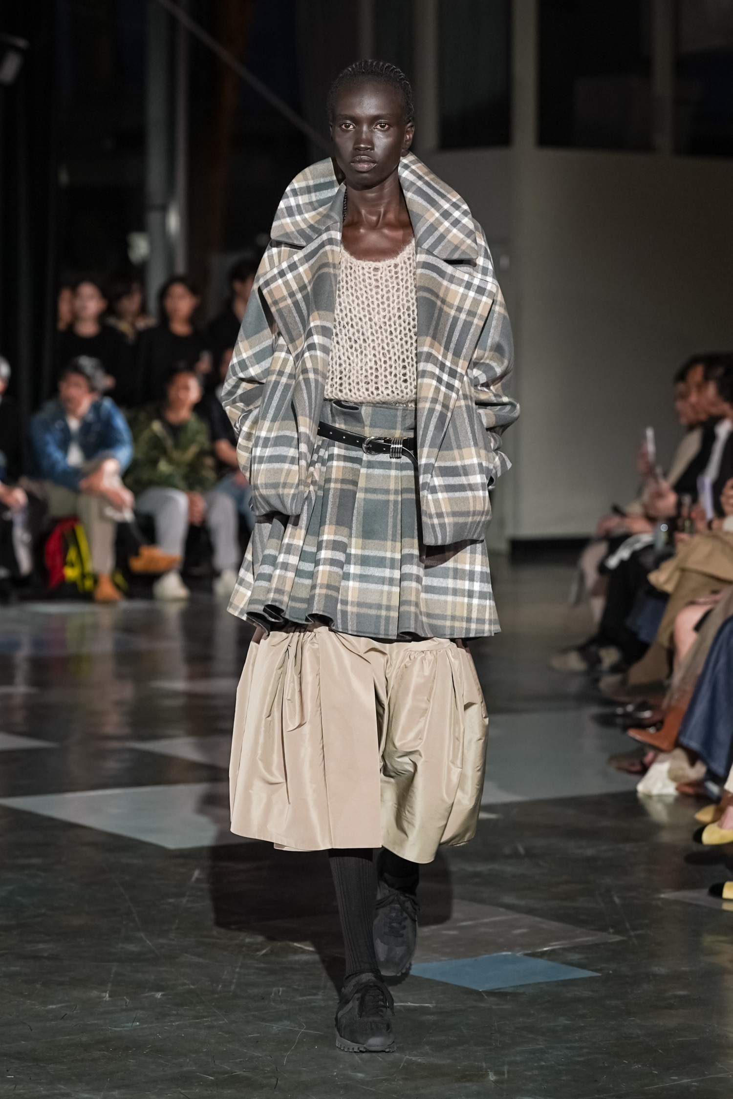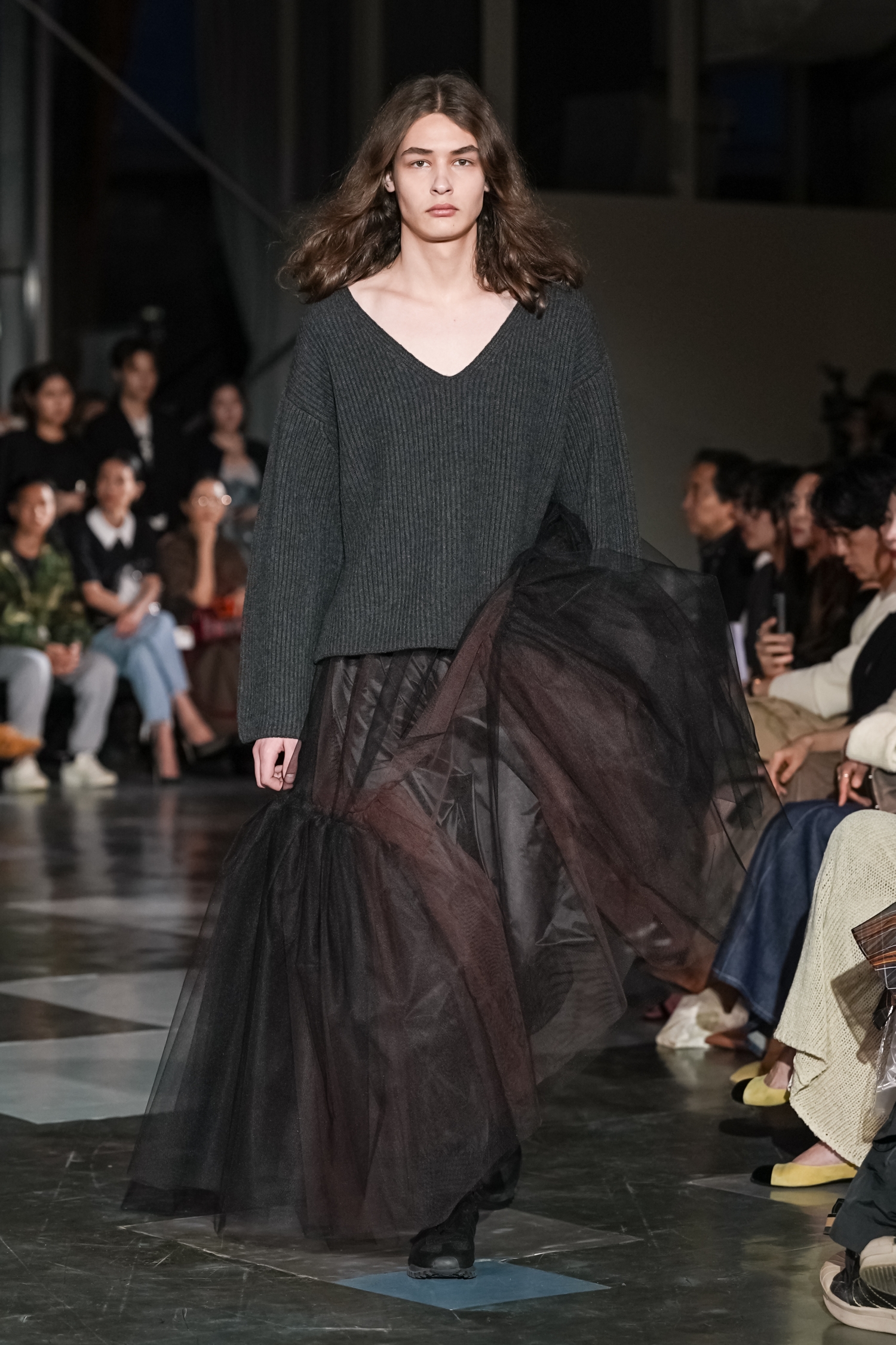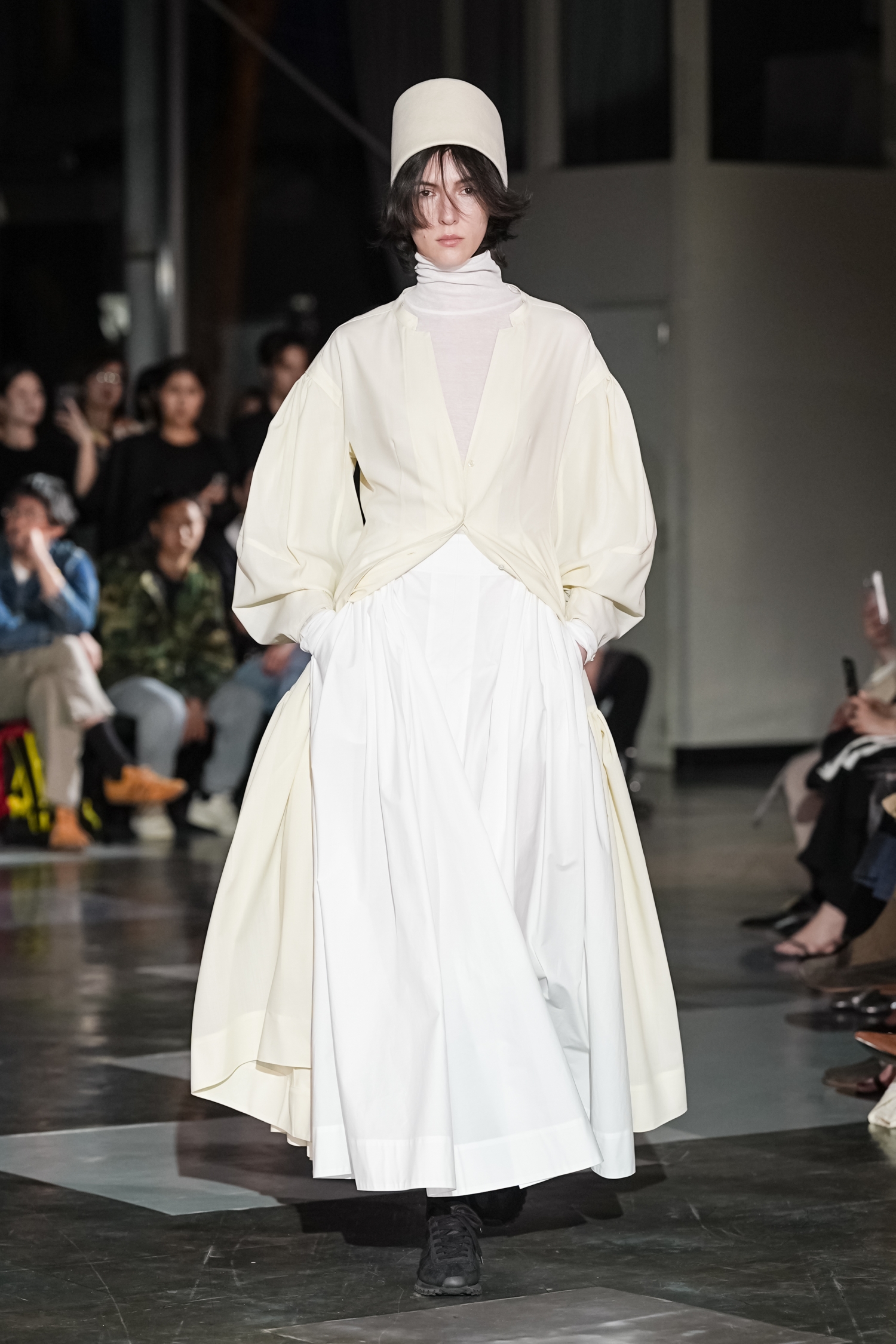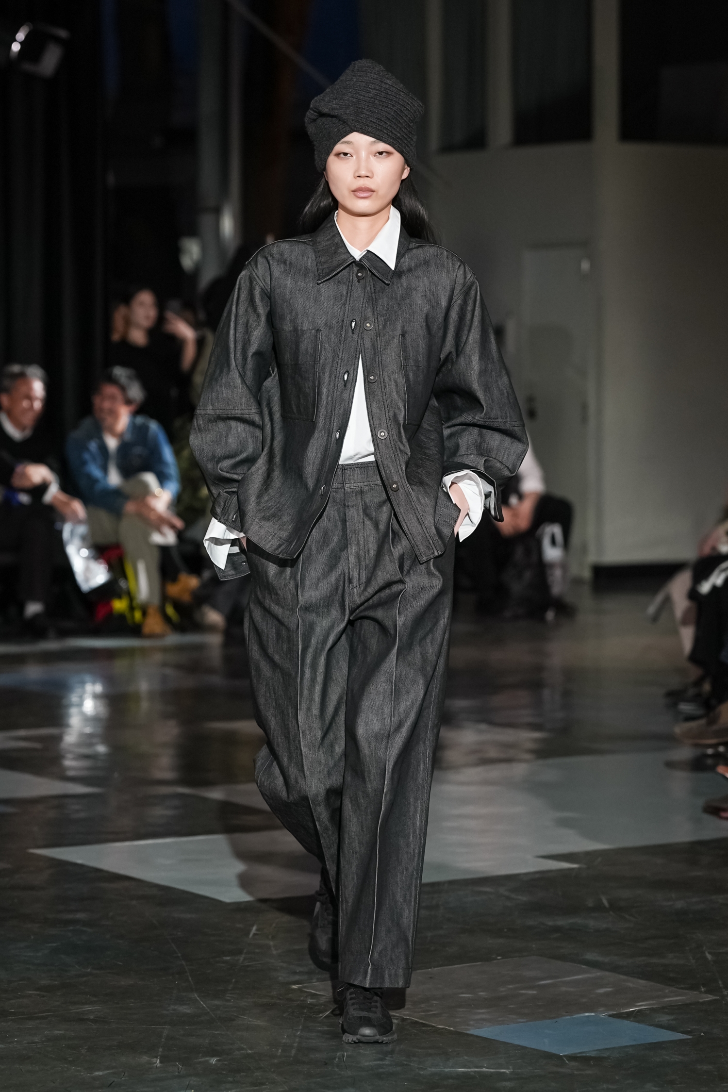 シルエットにも特徴があります。身体のラインをなぞるのではなく、空気をはらむように設計されたフォルムは、動くたびに表情を変え、軽やかな存在感を放ちます。ジェンダーに縛られないニュートラルなシルエットでありながら、どこか優雅さを帯びるのは、素材選びとパターンの好バランスゆえ。機能性をベースにしながらも、あくまで「装う楽しさ」を提案している点が印象的でした。