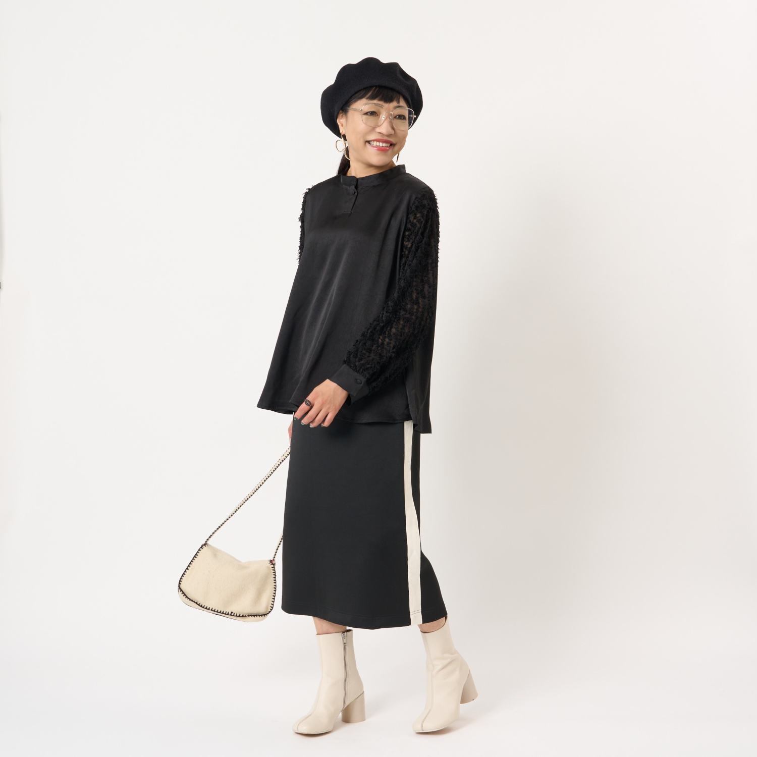 ・ストンと落ちるシルエットが、レイヤードスタイルを大人っぽくスタイリッシュな印象に。