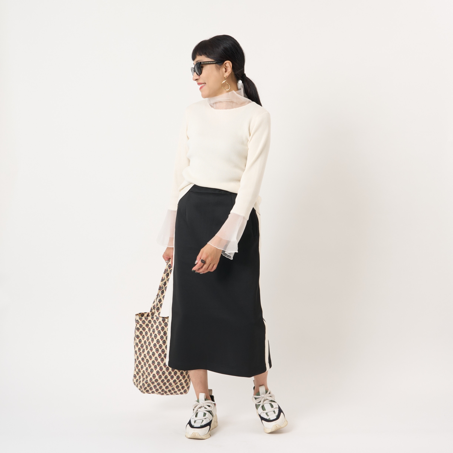 ◆ミューリエ 大人フェミニンなスポーティーミックス サイドラインスカート