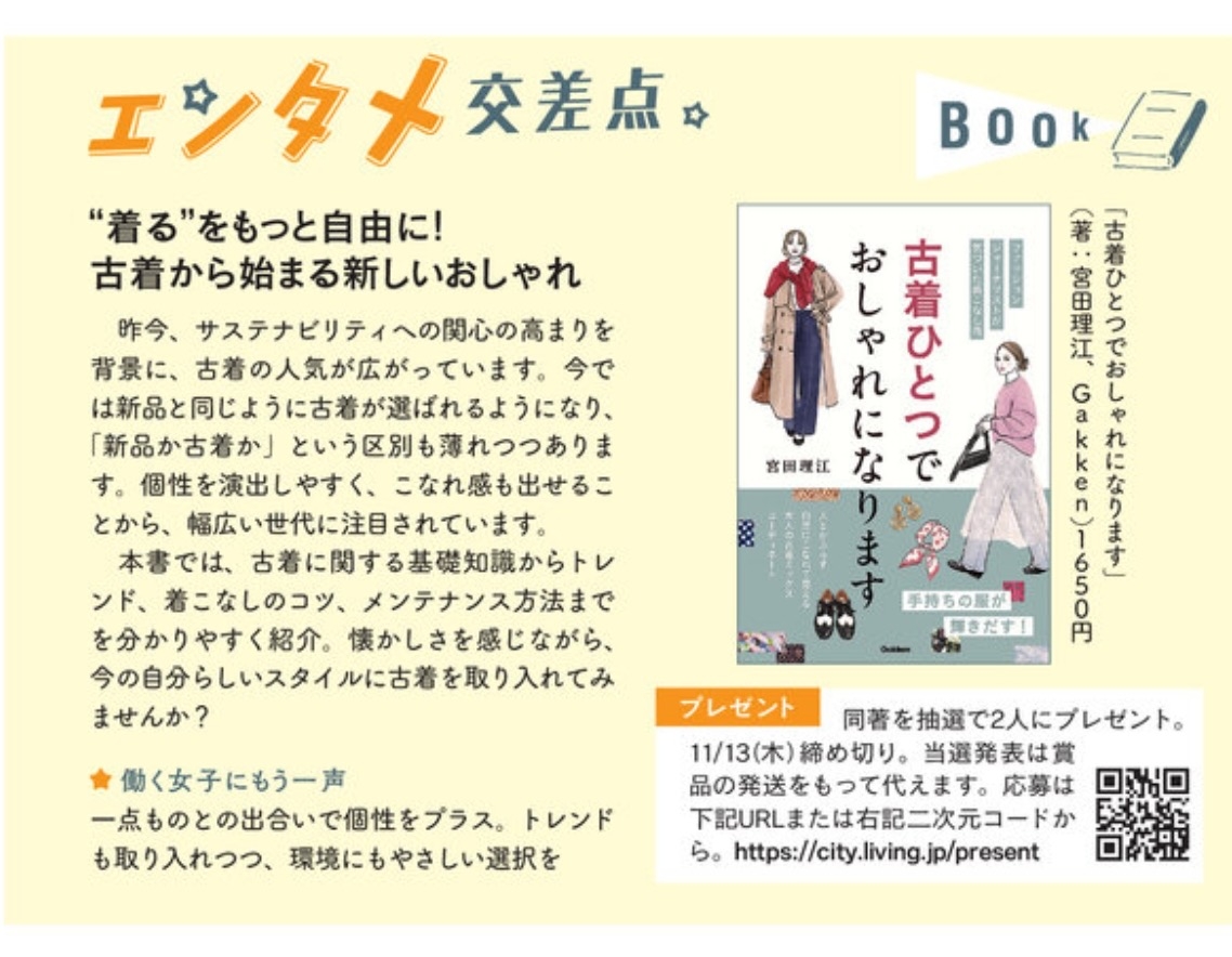 “なんかしっくりこない”を解決!古着ひとつで、大人のおしゃれが生まれ変わる / “着る”をもっと自由に!古着から始まる新しいおしゃれ(書籍『古着ひとつでおしゃれになります』を抽選でプレゼント)CityLivingに掲載されました