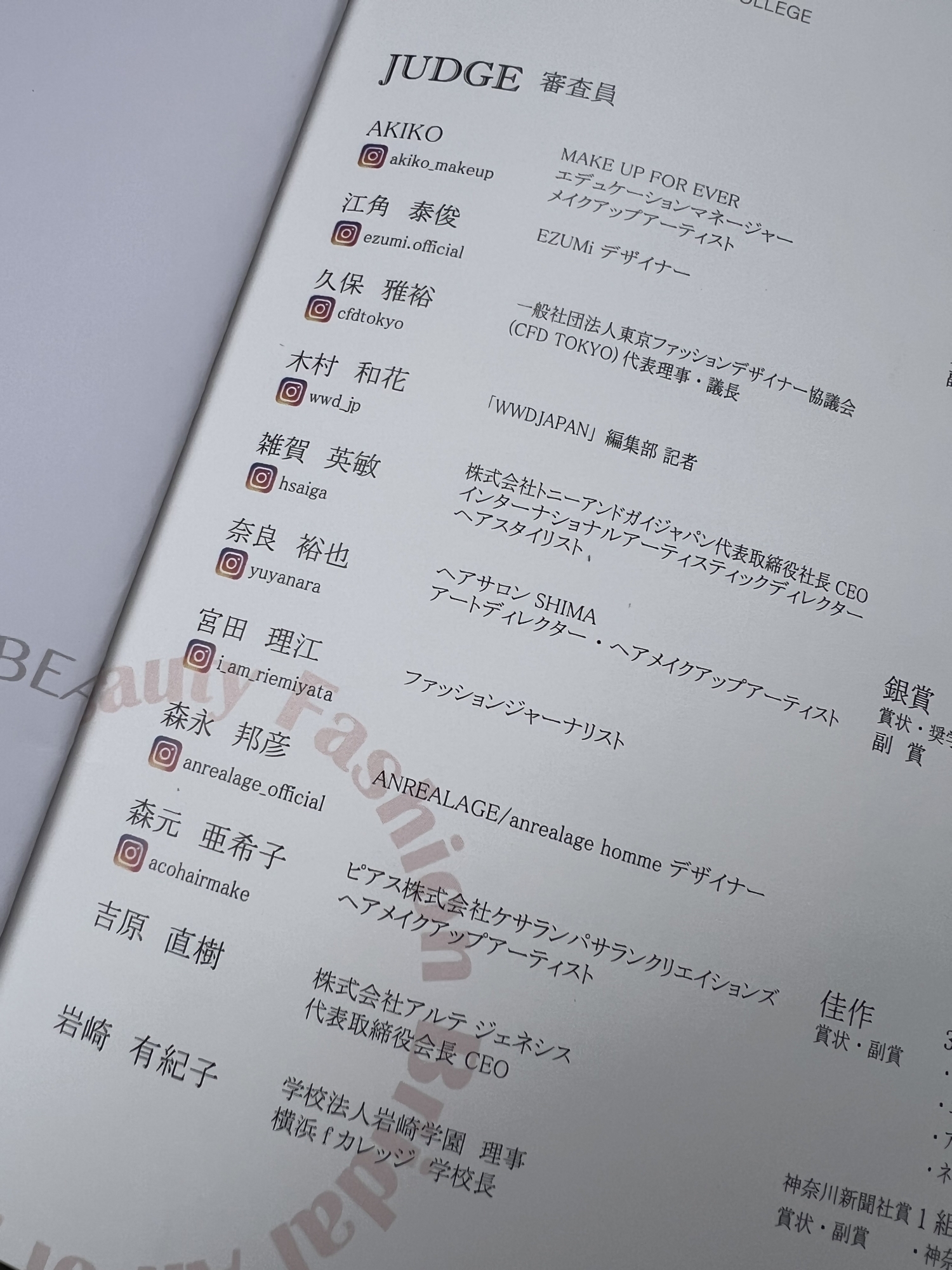 学校法人岩崎学園「横浜fカレッジ」が主催する「122th FASHION & BEAUTY LIVE」が神奈川芸術劇場(KAAT)で開催されました。今年も「ファッションデザイン&ビューティ」部門のコンテスト審査員として参加しました。蒼々たる審査員の皆樣とご一緒できたことにも、身が引き締まる思いでした。