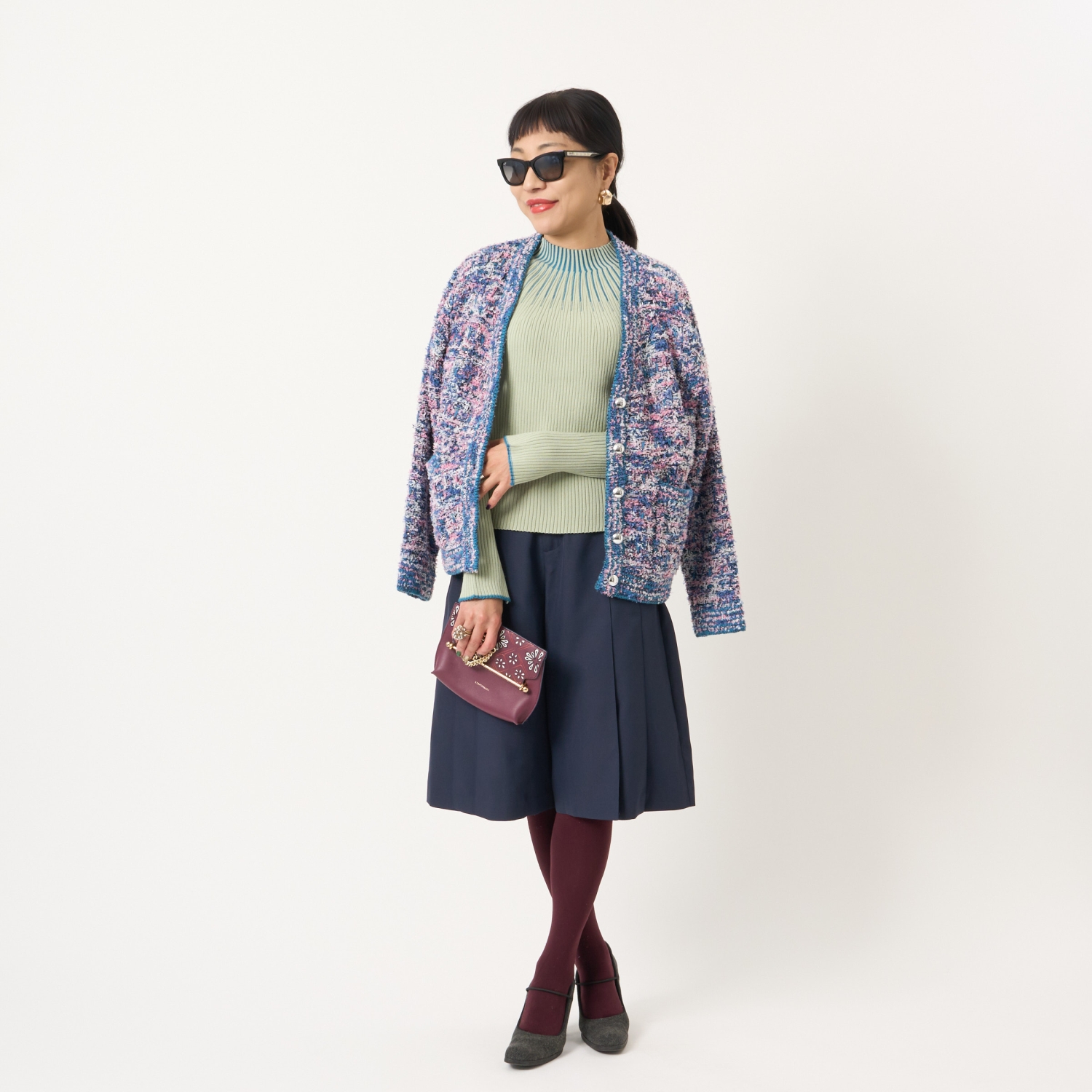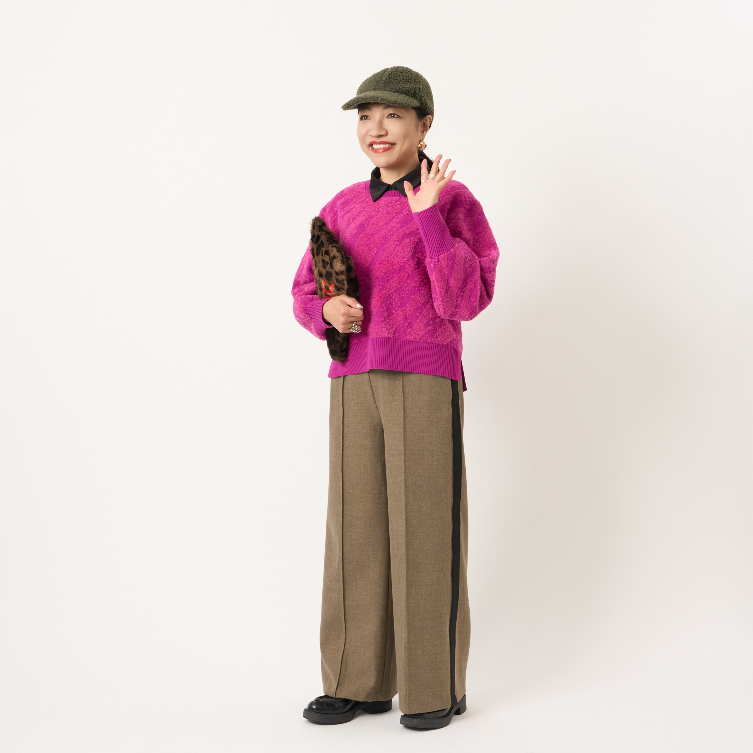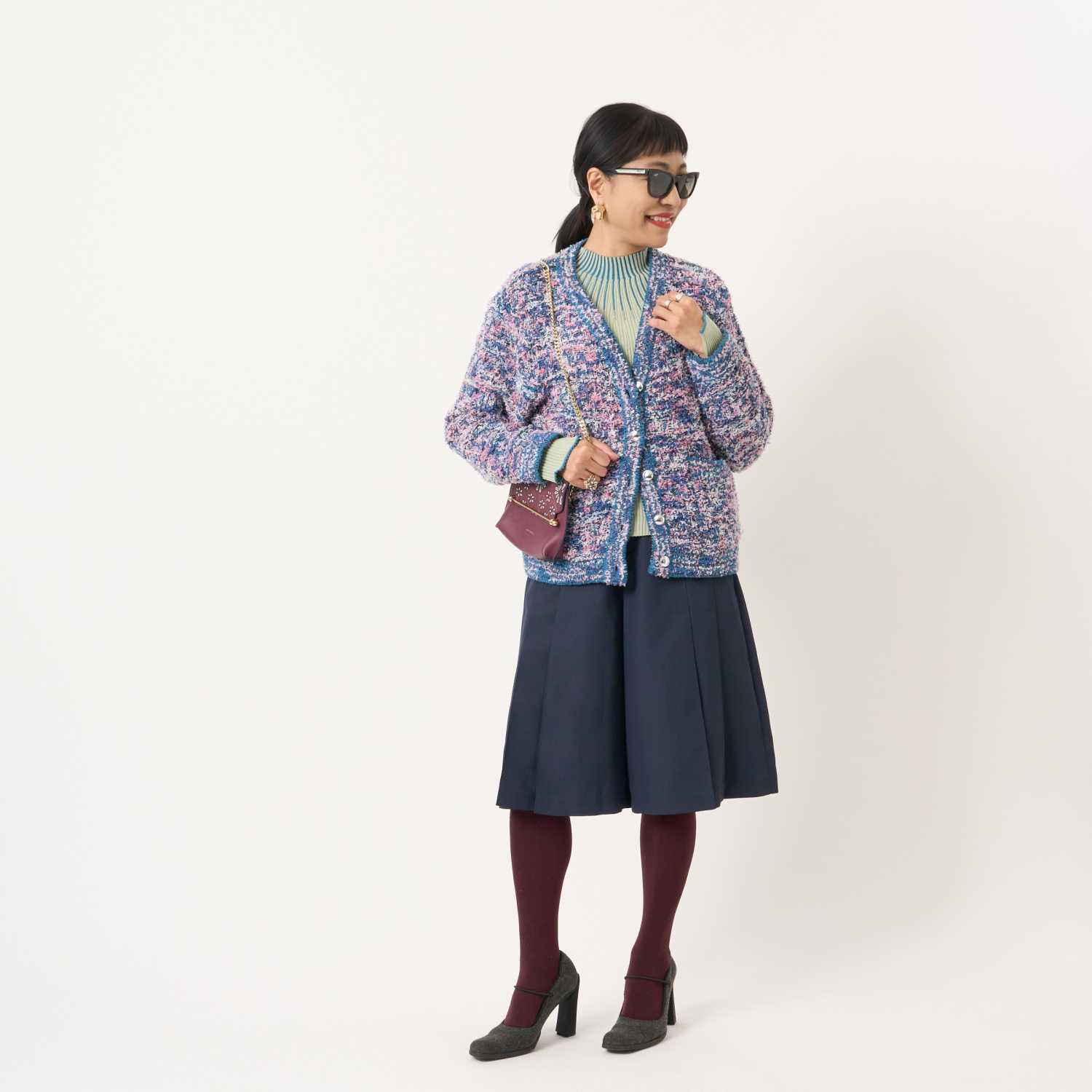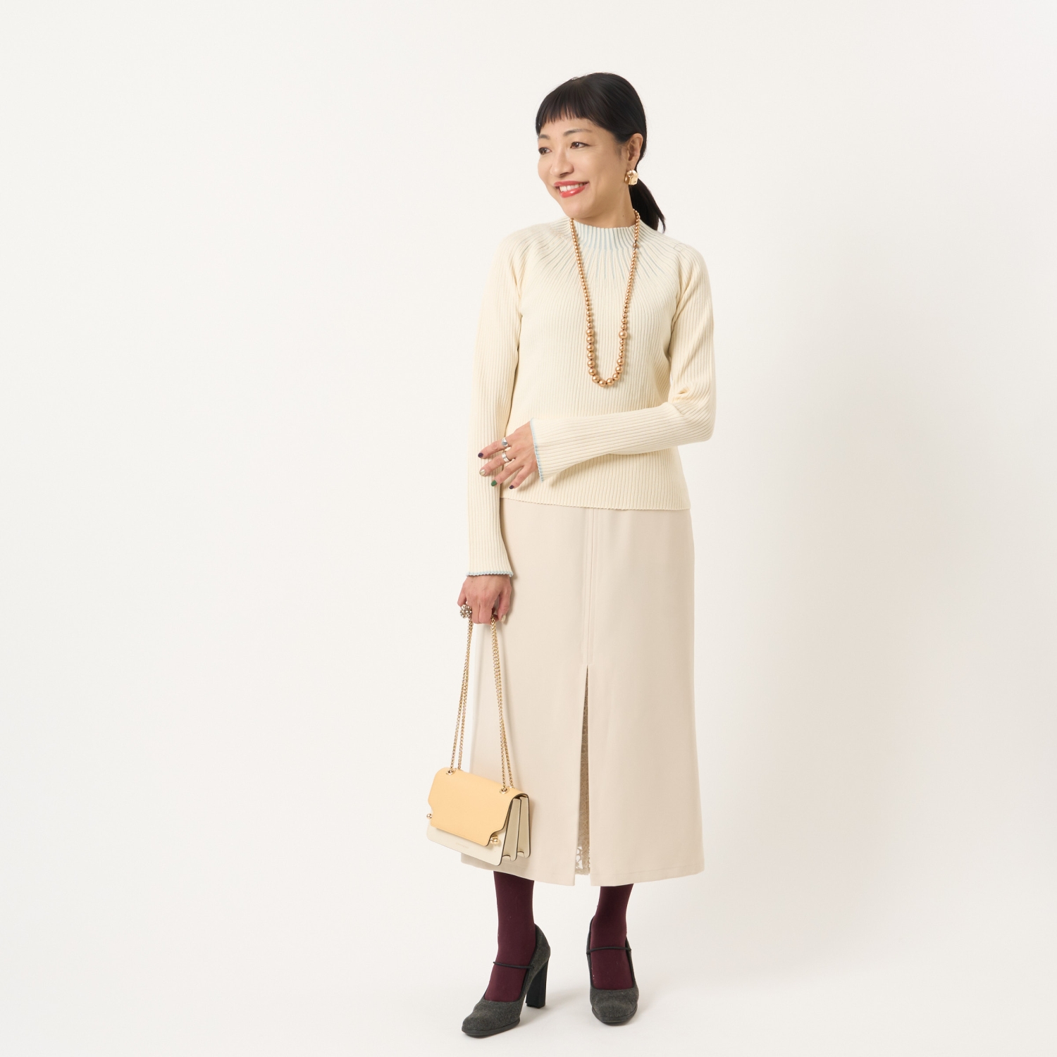・ハイネックやボウタイブラウス、シャツなどさまざまなトップスと好相性で、幅広いスタイリングが楽しめます。