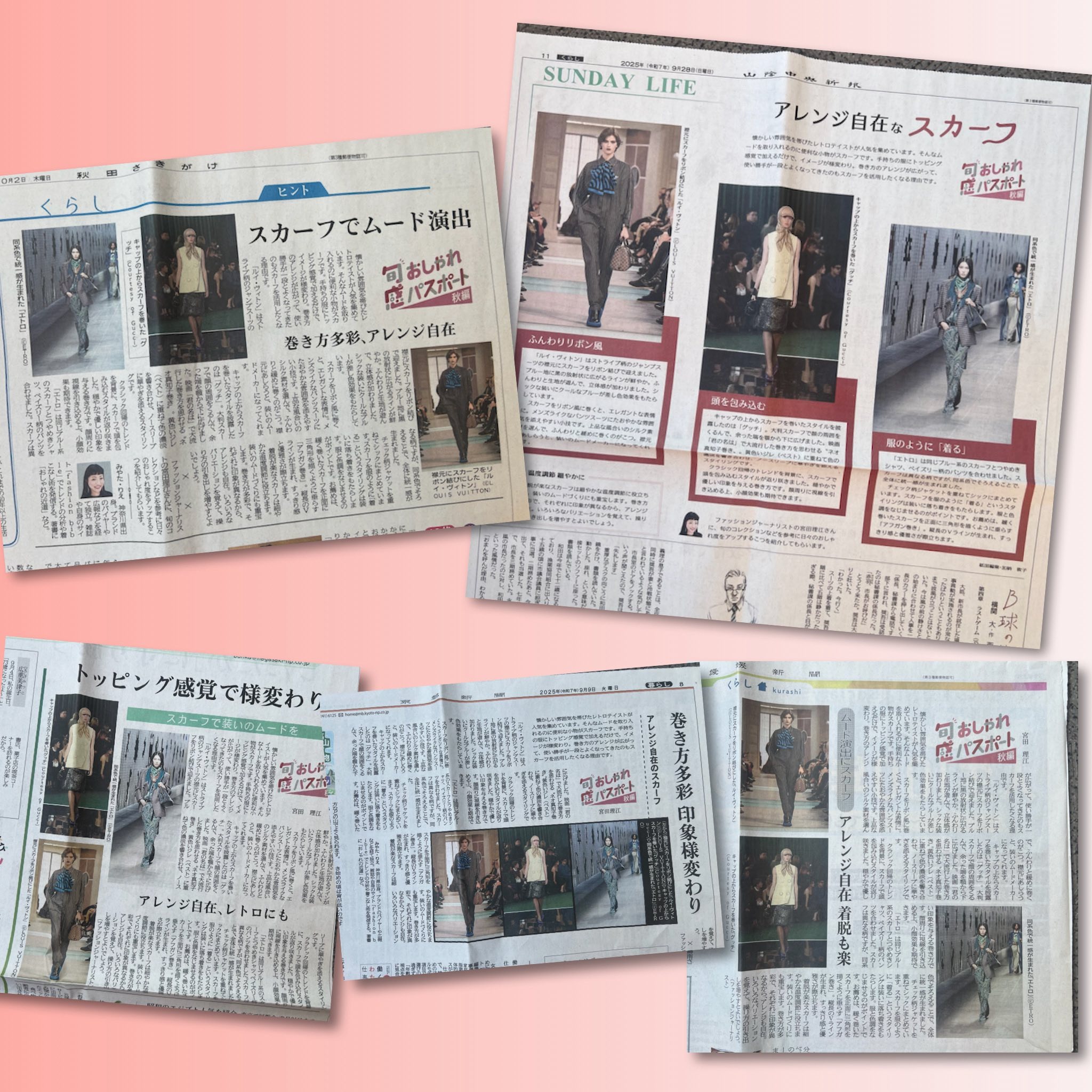 2025年春夏トレンド 共同通信社・連載「旬感おしゃれパスポート」vol.7掲載~2025年秋編~「スカーフでアレンジ自在」