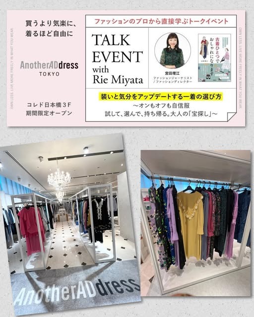 ファッションサブスク「AnotherADdress(アナザーアドレス)」を、リアル店舗で試着し放題。お気に入りの服を1着そのまま持ち帰れます。