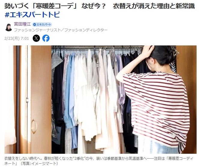 勢いづく「寒暖差コーデ」 なぜ今? 衣替えが消えた理由と新常識 #エキスパートトピ