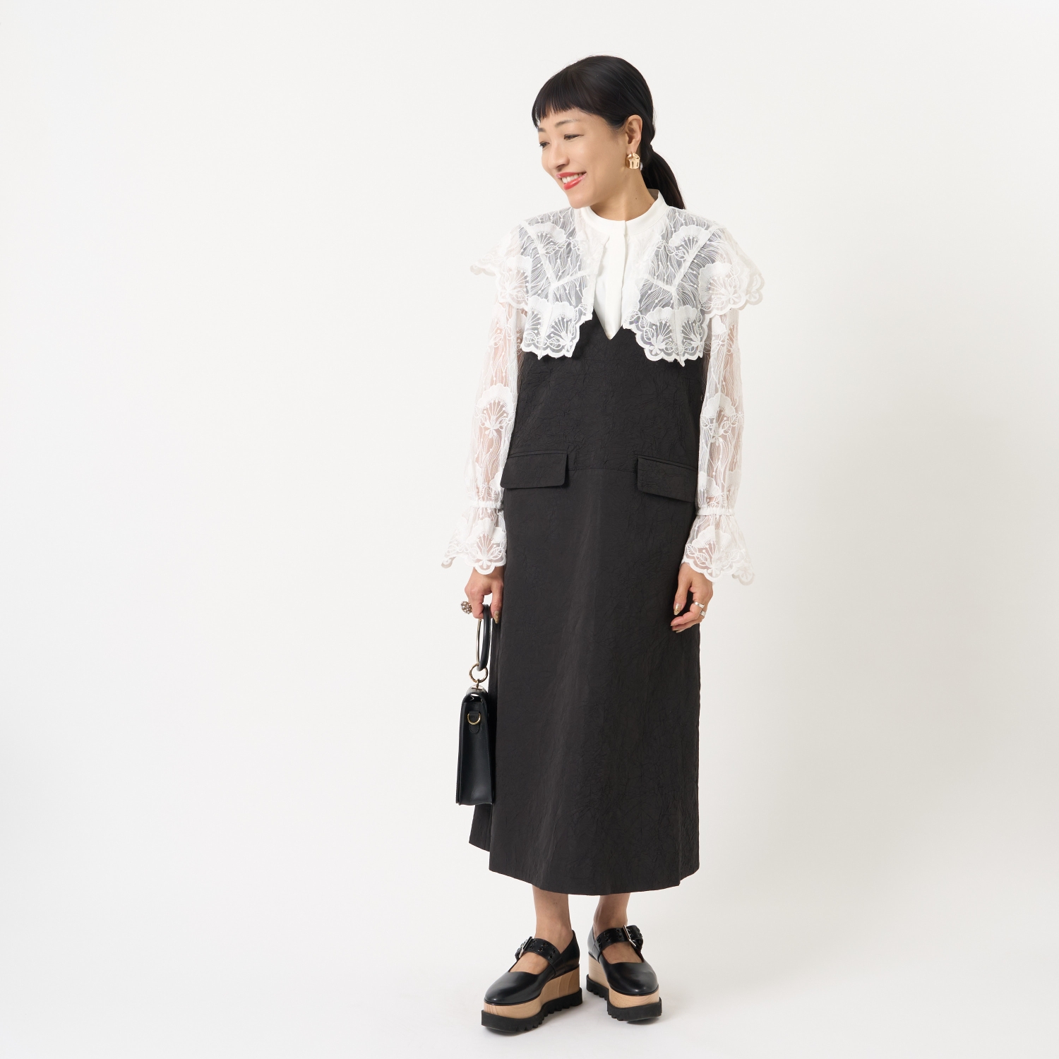 ・2026年春夏の注目素材であるレースを主役にしたデザイン。繊細な透け感が軽やかさを添えます。
